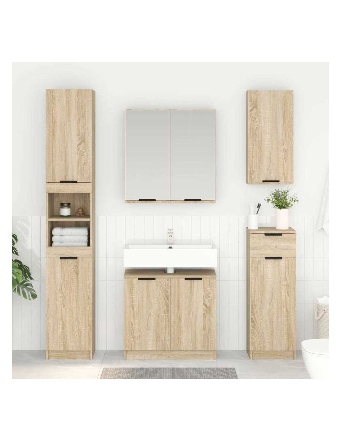 Questo Mobile da Bagno in Legno Ingegnerizzato combina alla perfezione design moderno e funzionalità, perfetto per ottimizzare lo spazio senza perdere in stile. La forma rettangolare e snella rende ogni bagno più elegante, con un tocco di minimalismo e funzionalità grazie a un'organizzazione intelligente.