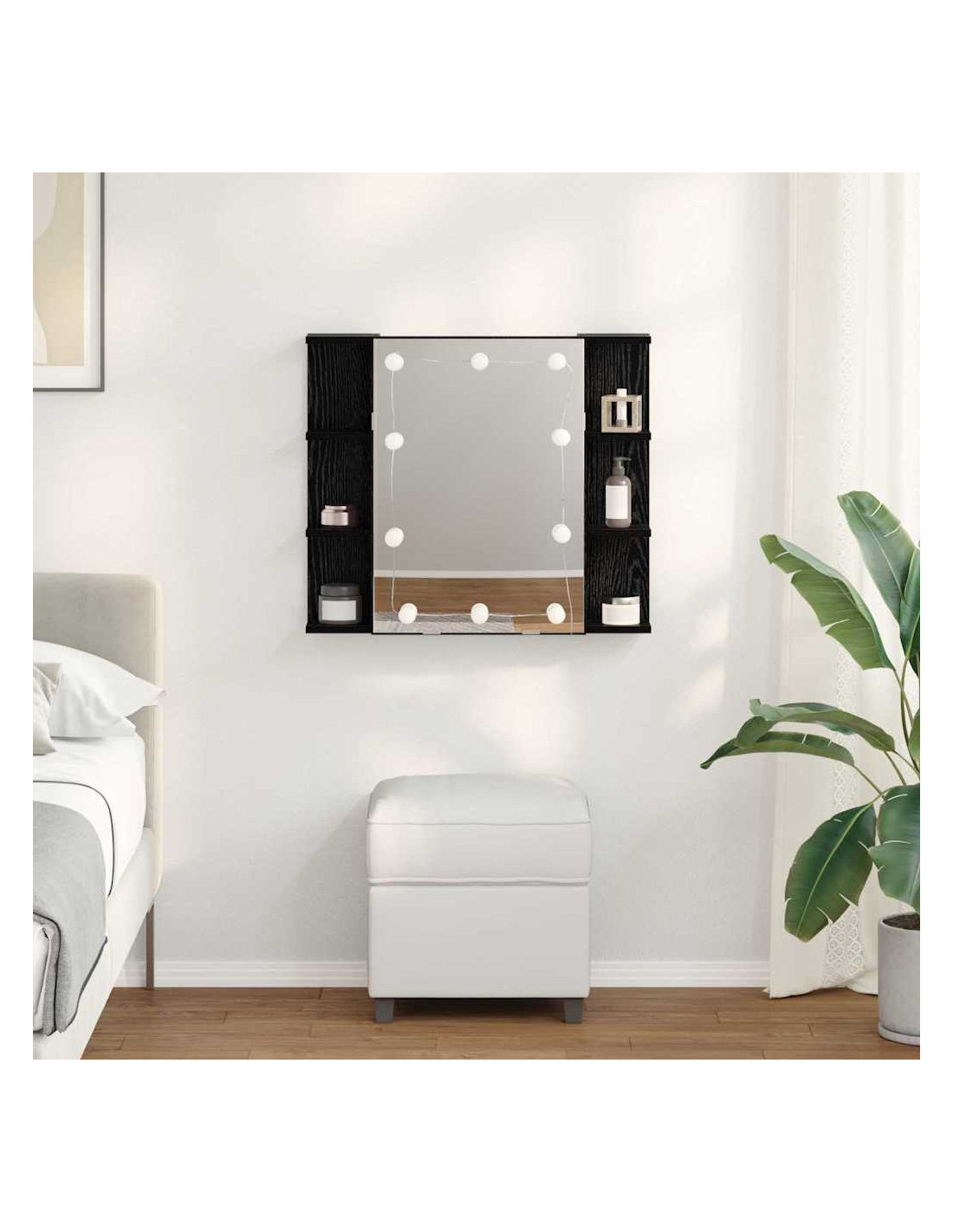 - Componenti Inclusi: Ha specchi piani che sono ideali per la cura personale, trasformando gli spazi in aree pratiche per la routine quotidiana. Le mensole offrono tanto spazio per trucchi e altri prodotti essenziali, migliorando l'organizzazione.