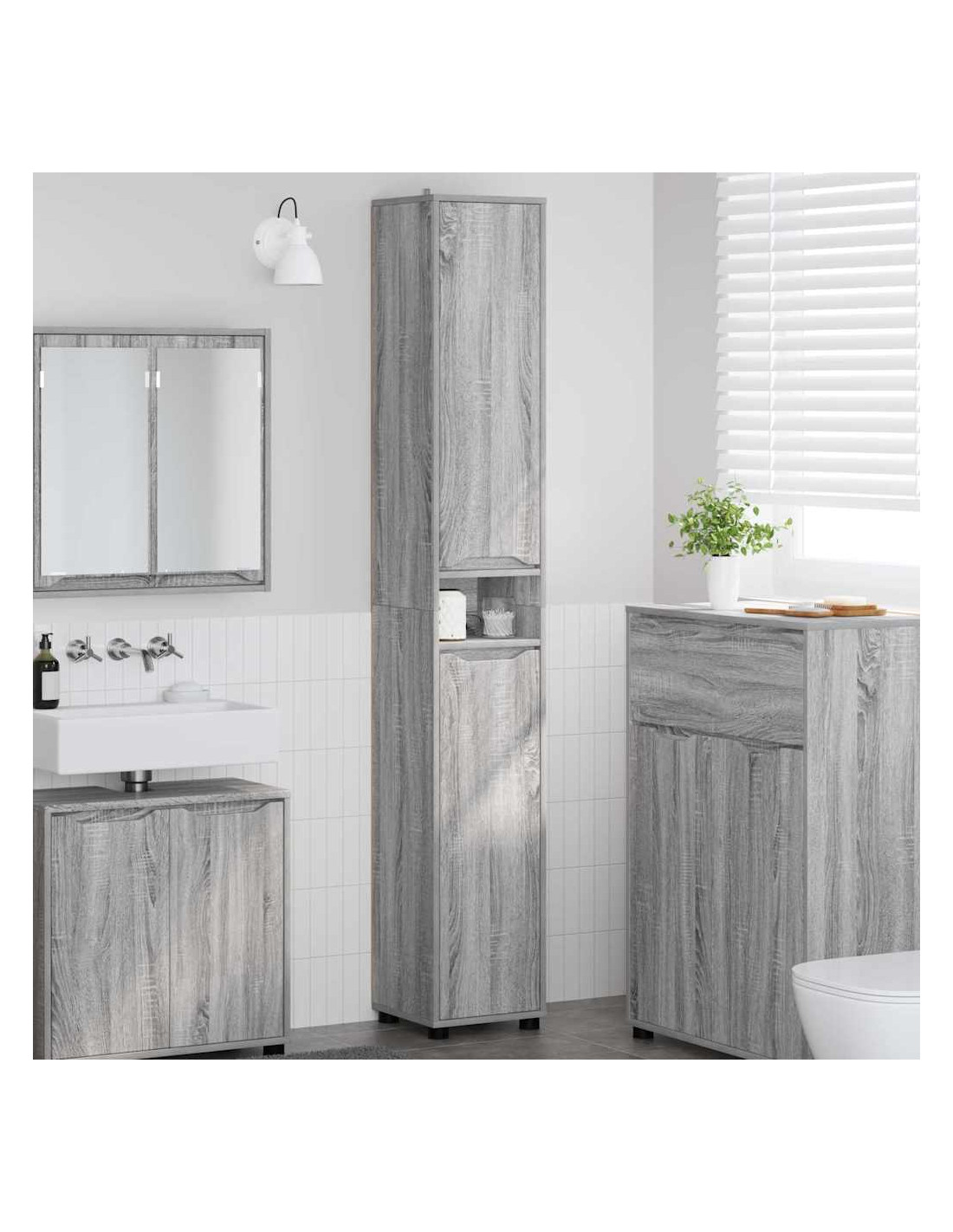 Questo Mobile da Bagno Moderno è un'aggiunta elegante a qualsiasi casa, unendo stile e praticità. Con linee pulite e nessun fronzolo, si adatta perfettamente a uno stile di vita contemporaneo che ama la semplicità. La struttura in legno ingegnerizzato offre una superficie liscia che rende il tuo bagno più raffinato. Grazie al grande spazio di stoccaggio, è ideale per tenere tutto in ordine e facilmente accessibile, rendendo le tue routine quotidiane più facili e senza ingombri.