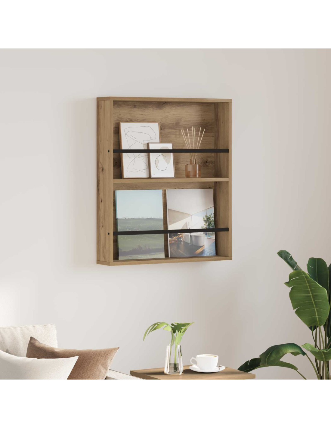 - Efficienza a parete: Montato direttamente sulla parete, questo rack libera tanto spazio a terra, facendo apparire tutto più ampio. Ti permette di organizzare in modo semplice, così hai sempre a portata di mano le tue letture preferite, lasciando il resto del tuo ambiente libero per altre idee di arredamento.