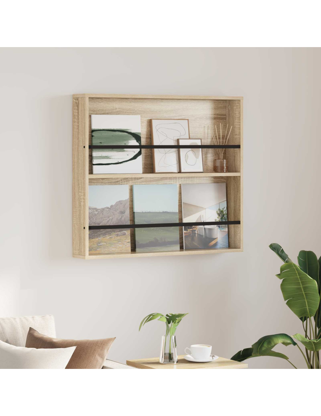 - Efficienza a parete: Montato direttamente sulla parete, questo rack libera tanto spazio a terra, facendo apparire tutto più ampio. Ti permette di organizzare in modo semplice, così hai sempre a portata di mano le tue letture preferite, lasciando il resto del tuo ambiente libero per altre idee di arredamento.