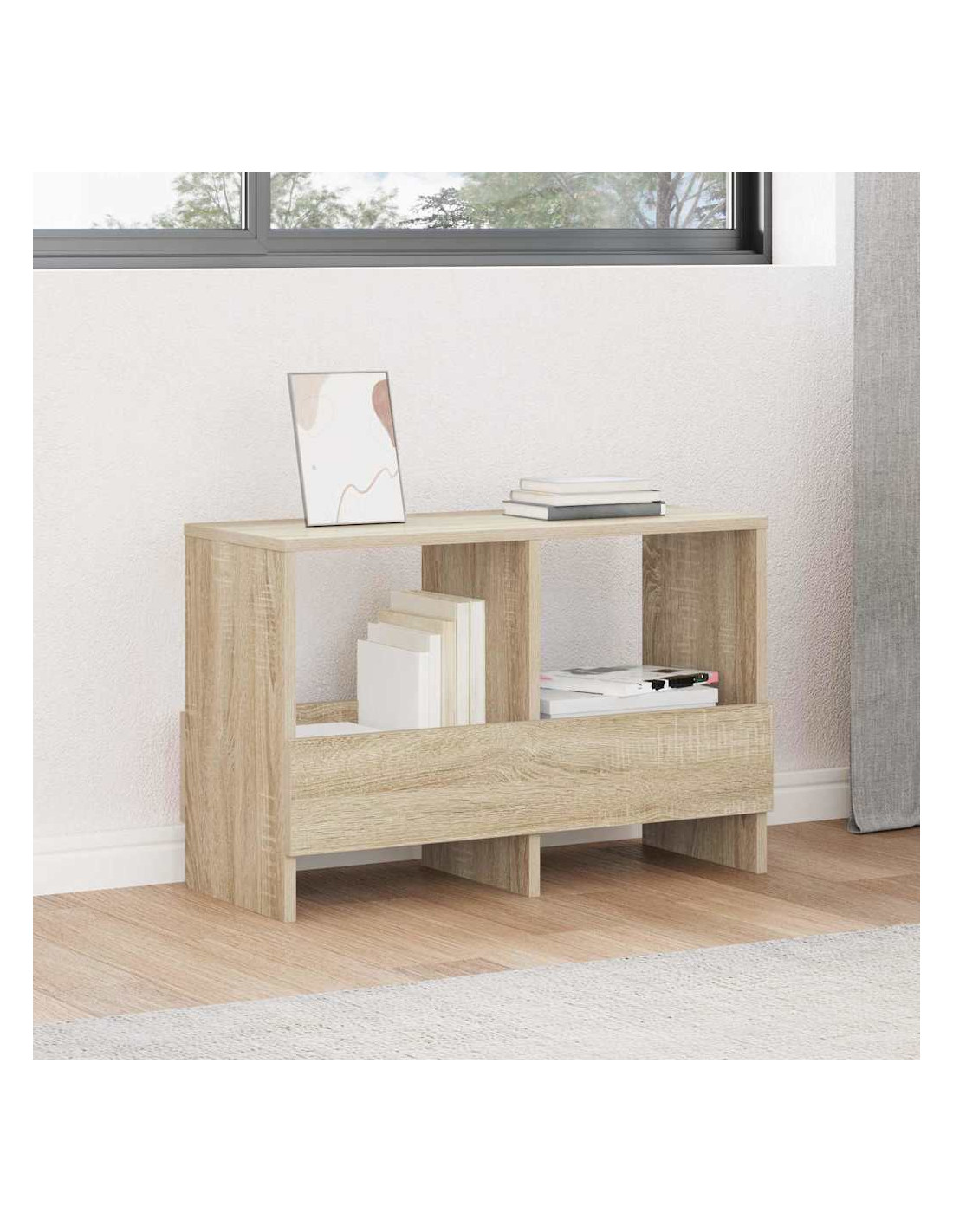 - Componenti Inclusi: Include un portamagazine integrato, realizzato con lo stesso materiale, per un design coerente. Questo ti permette di tenere in ordine riviste e libri, unendo utilità e bellezza nel tuo soggiorno.
