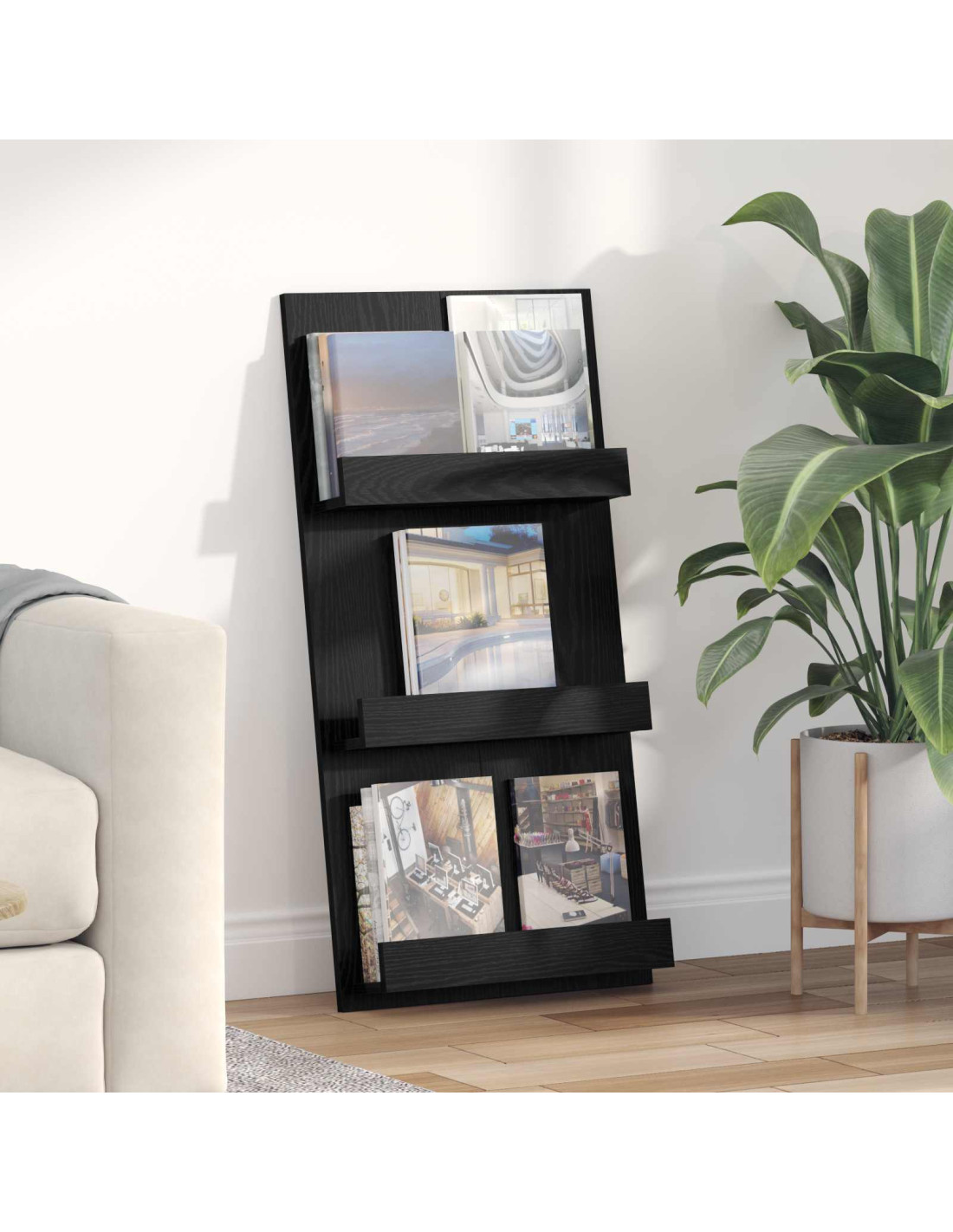 - Costruzione in legno ingegnerizzato Questo porta riviste è fatto di legno ingegnerizzato, un materiale che combina durata e stile. Resistente all’uso quotidiano e con una finitura liscia, aggiunge un tocco di eleganza al tuo arredamento.