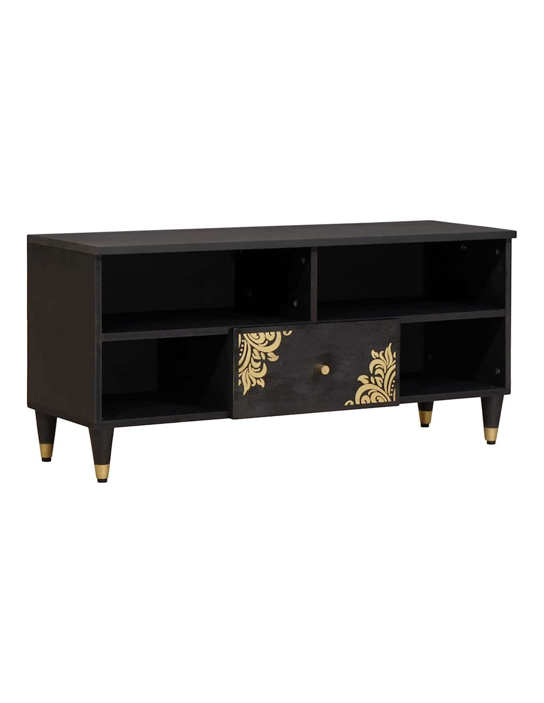 Questo armadietto per TV abbraccia un design moderno e offre pratico spazio per riporre le cose, rendendolo un'ottima scelta per il tuo soggiorno. Semplice e funzionale, è fatto in legno massello di mango, con accenti in ottone di classe. La sua forma elegante lo rende snello, e la grande capacità di stoccaggio assicura che i tuoi accessori siano sempre in ordine e facili da raggiungere.
