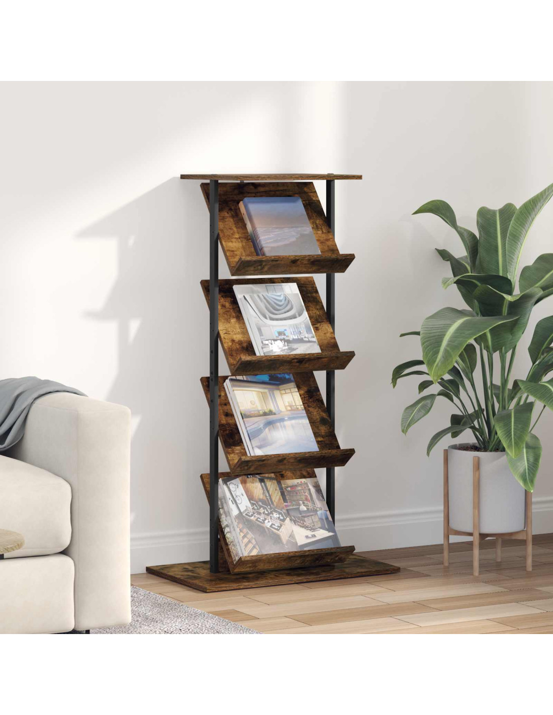 - Legno ingegnerizzato di qualità: Il porta riviste è realizzato in legno ingegnerizzato, conosciuto per la sua robustezza e resistenza all'usura quotidiana. La finitura liscia migliora il look moderno, rendendolo facile da pulire e resistente a macchie e graffi.