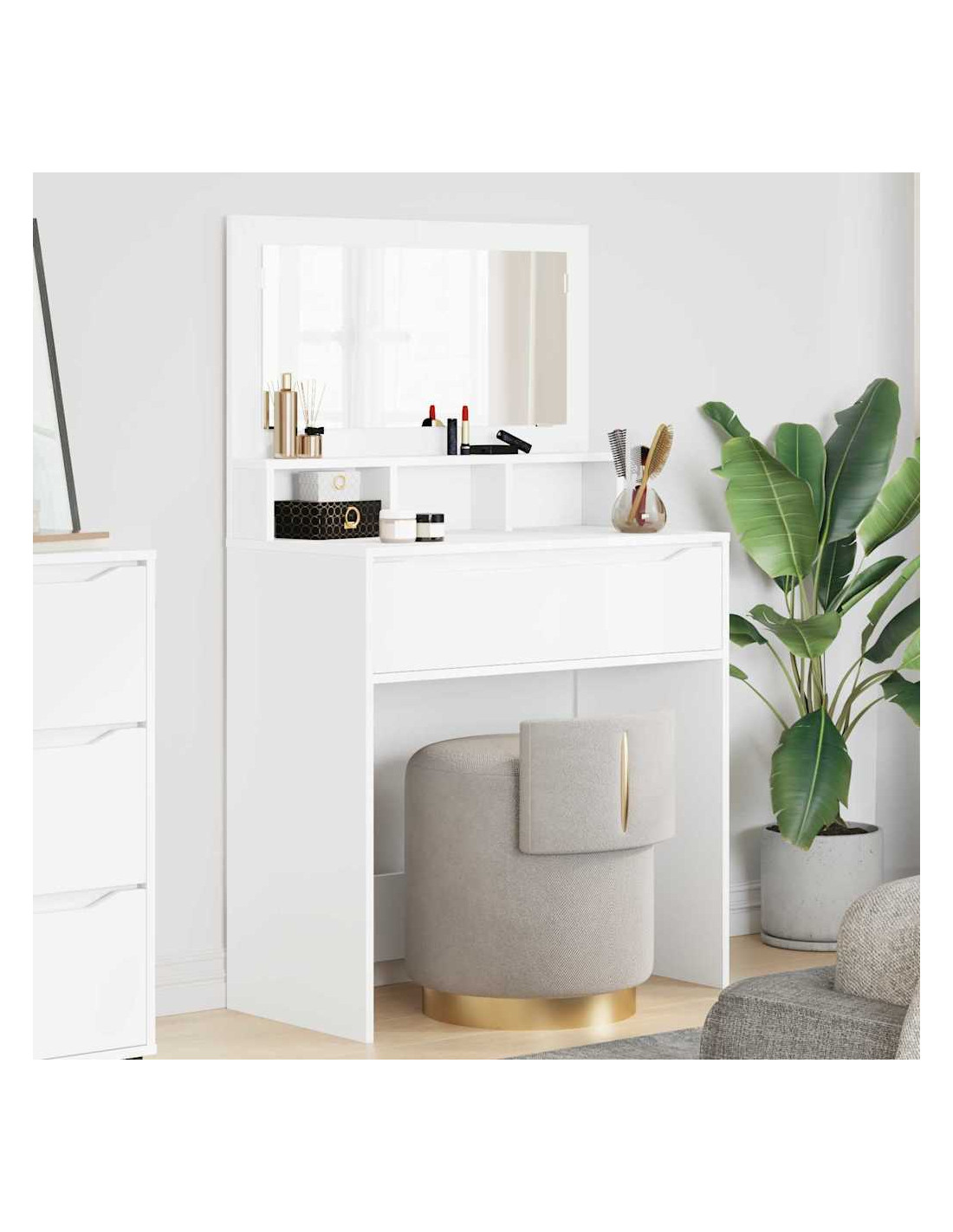 - materiali: Fatti in legno ingegnerizzato, questo tavolo da trucco ha una superficie liscia e raffinata che colpisce. Il legno ingegnerizzato assicura una struttura robusta, dando durata e stile. Questo materiale si sposa bene con l'estetica moderna, garantendo affidabilità nel tempo.
