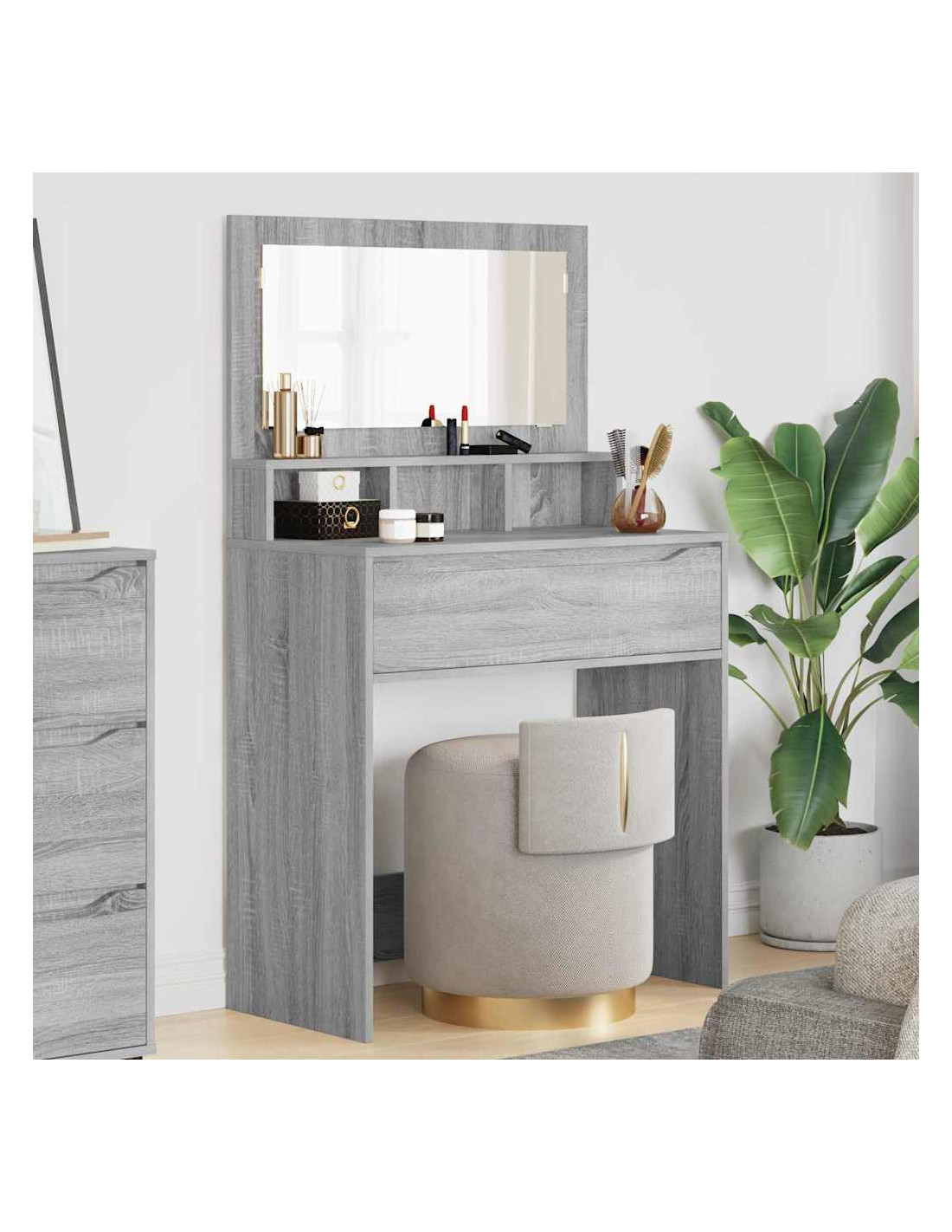 - materiali: Fatti in legno ingegnerizzato, questo tavolo da trucco ha una superficie liscia e raffinata che colpisce. Il legno ingegnerizzato assicura una struttura robusta, dando durata e stile. Questo materiale si sposa bene con l'estetica moderna, garantendo affidabilità nel tempo.