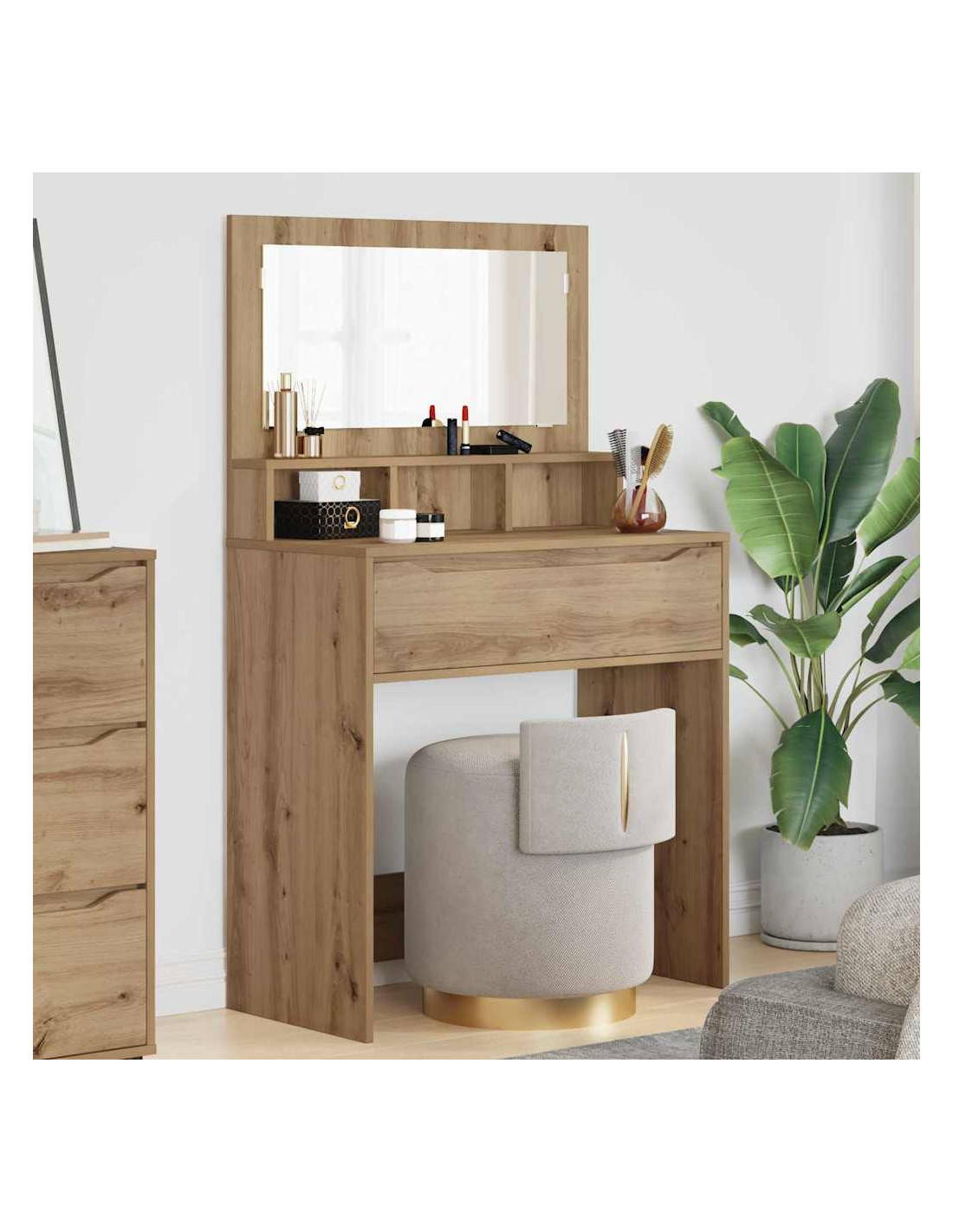 - materiali: Fatti in legno ingegnerizzato, questo tavolo da trucco ha una superficie liscia e raffinata che colpisce. Il legno ingegnerizzato assicura una struttura robusta, dando durata e stile. Questo materiale si sposa bene con l'estetica moderna, garantendo affidabilità nel tempo.