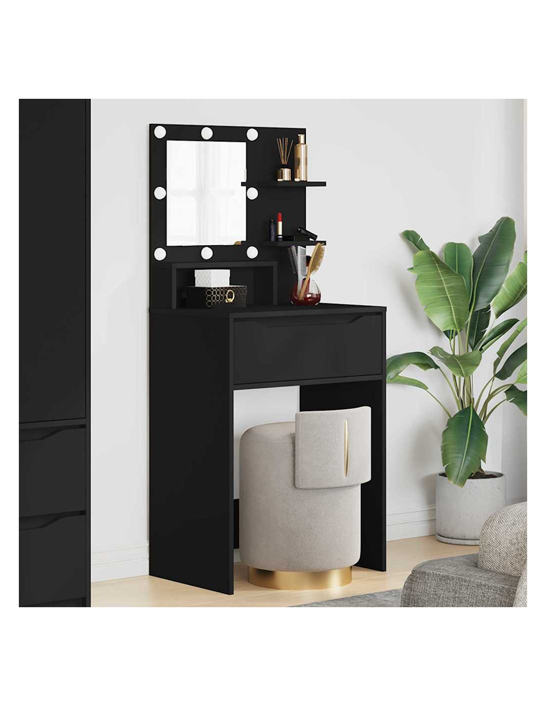 - Componenti di stoccaggio versatili Con cassetti a cuscinetto e ripiani in laminato, offre tante opzioni per tenere in ordine i tuoi accessori di bellezza. I cassetti si aprono senza fatica, grazie ai cuscinetti a sfera.