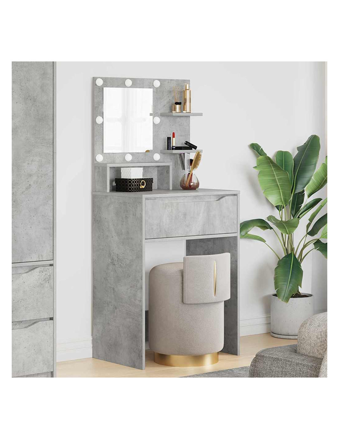 Questo tavolo da trucco moderno combina stile e praticità, con un design elegante e luci sofisticate. Le linee pulite e l'ornamentazione minimalista si adattano perfettamente agli interni delle case moderne. Ideale per chi cerca una soluzione pratica e stilosa per le esigenze di bellezza e toelettatura.