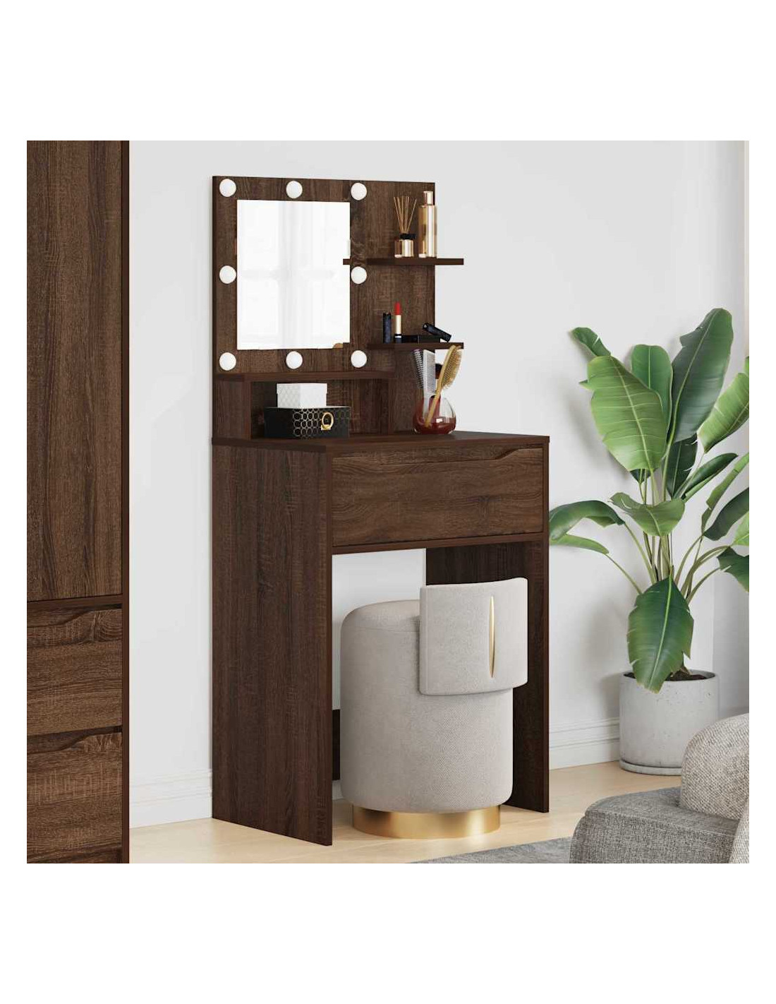 Questo tavolo da trucco moderno combina stile e praticità, con un design elegante e luci sofisticate. Le linee pulite e l'ornamentazione minimalista si adattano perfettamente agli interni delle case moderne. Ideale per chi cerca una soluzione pratica e stilosa per le esigenze di bellezza e toelettatura.