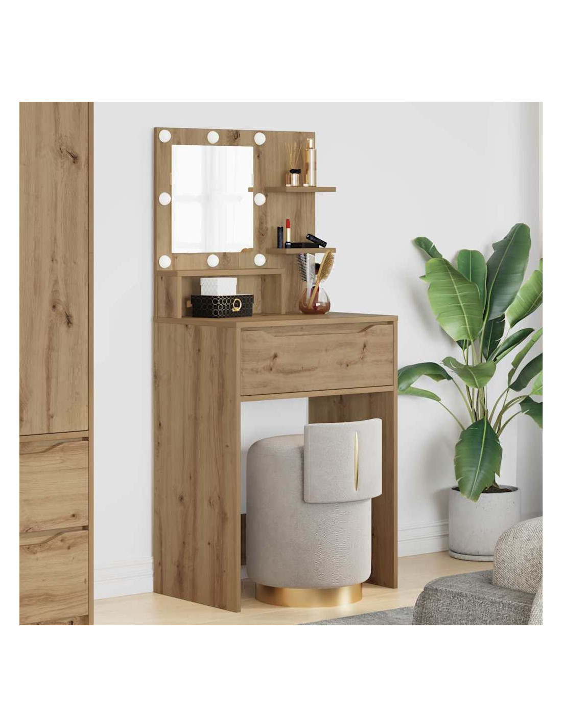 - Componenti di stoccaggio versatili Con cassetti a cuscinetto e ripiani in laminato, offre tante opzioni per tenere in ordine i tuoi accessori di bellezza. I cassetti si aprono senza fatica, grazie ai cuscinetti a sfera.