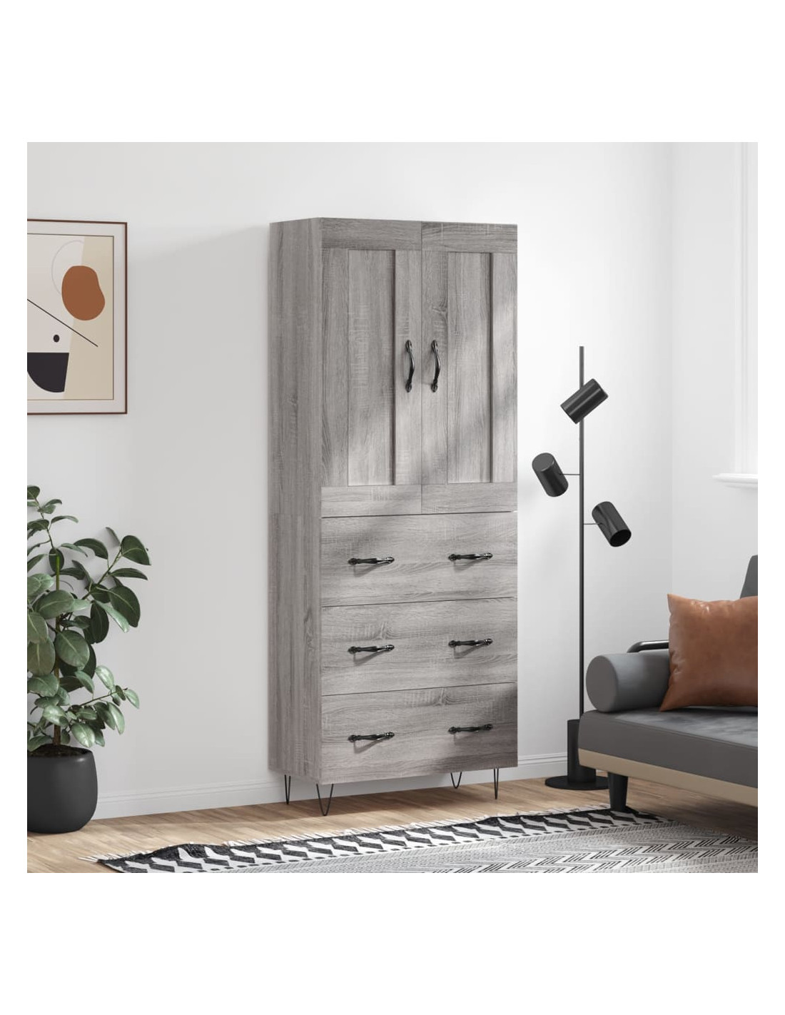 Credenza Grigio Sonoma 69,5x34x180 cm in Legno Multistrato
