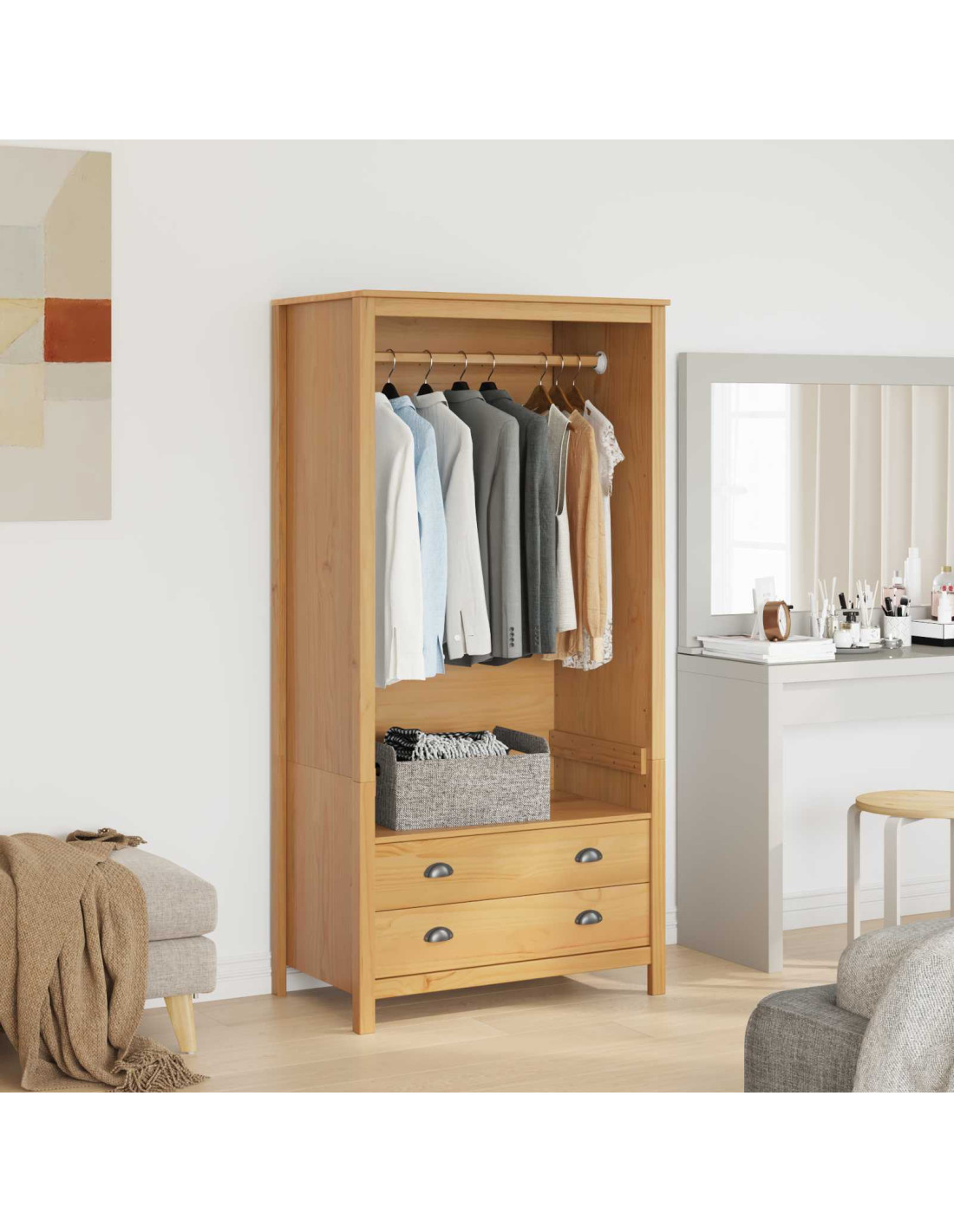 - Legno massello di pino di alta qualità: Realizzato con legno massello di pino, noto per la sua durata. Questo materiale assicura lunga vita e migliora l'estetica dell'armadio, aggiungendo eleganza a qualsiasi camera.