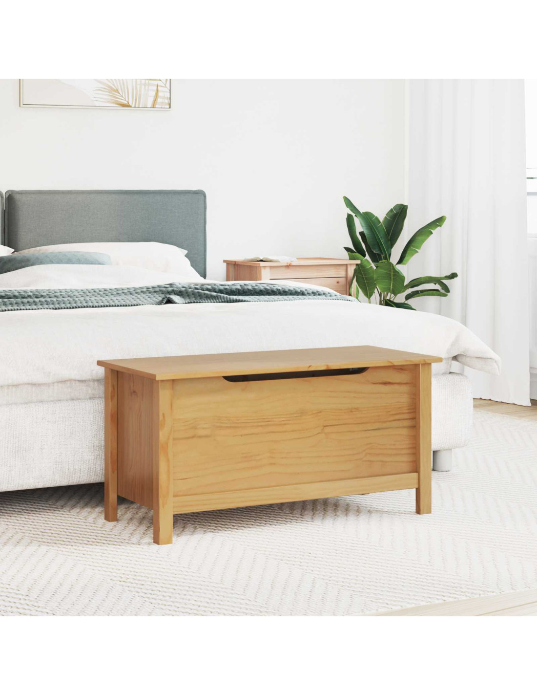 La scatola di stoccaggio moderna è la soluzione perfetta per chi cerca qualcosa di pratico e bello per i propri spazi. Con un design minimalista, si integra facilmente in qualsiasi stanza, ideale per camere da letto e soggiorni. Il legno massello di pino è caldo e accogliente e si adatta vari stili di arredamento. La forma rettangolare la rende compatta ma comunque spaziosa, perfetta per tanti usi in casa.
