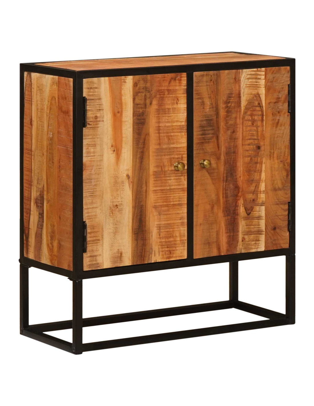 Questo mobile è un'aggiunta moderna che porta un tocco di stile industriale a casa tua. Si adatta perfettamente a sale da pranzo, soggiorni o camere da letto, ed è costruito in legno massello di acacia con un bel colore marrone, contrastato da un robusto telaio in ferro nero. È pensato per offrire soluzioni di archiviazione eleganti e pratiche, arricchendo il tuo arredamento interno.