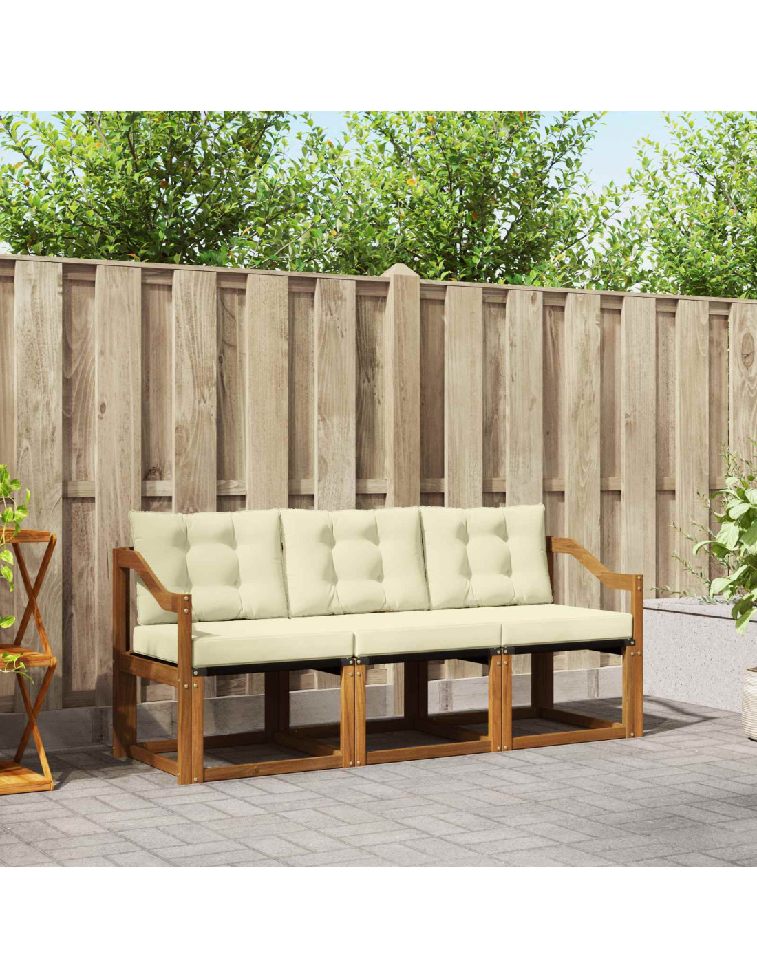 Il set di mobili da esterno combina stile e funzionalità, creando un bel punto focale per qualsiasi giardino o terrazza. Il design moderno, con linee pulite e pochi dettagli, aggiunge eleganza mentre invita al relax all'aperto e alla socializzazione. Realizzato interamente in legno massello di acacia, questo set è resistente e mantiene il suo fascino nel tempo, rendendolo ideale per chi cerca praticità e design raffinato nei mobili esterni.