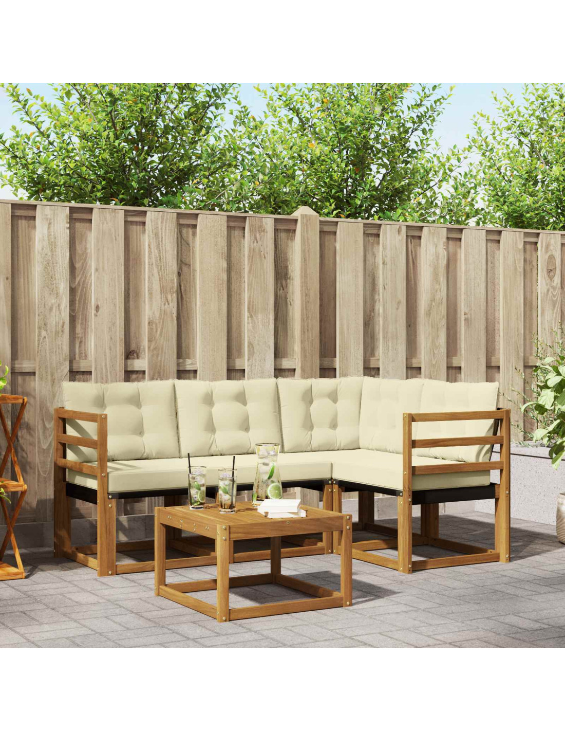 - Funzioni/Design: Il tavolo slat è progettato per drenare bene dopo la pioggia. I cuscini spessi offrono un comfort straordinario, perfetti per chiacchiere o momenti di tranquillità.