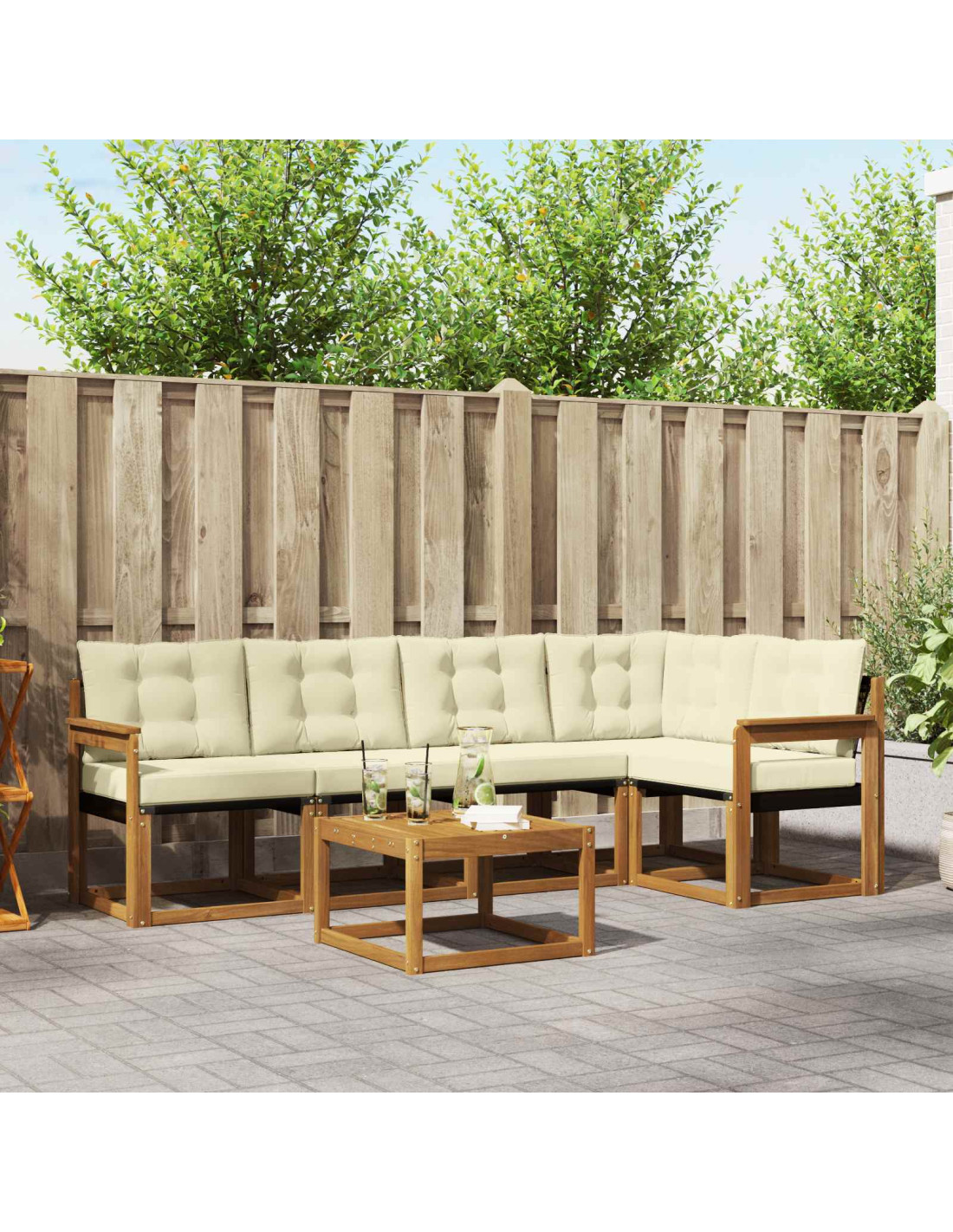 - Materiali: Fatto con legno massello di acacia e textilene, questo set di divani porta una bellezza naturale a qualsiasi spazio esterno. Il legno di acacia è durevole e ha una finitura bella, mentre il textilene offre una seduta traspirante per il massimo comfort. Questi materiali sono resistenti agli agenti atmosferici, perfetti per stare all’aperto.