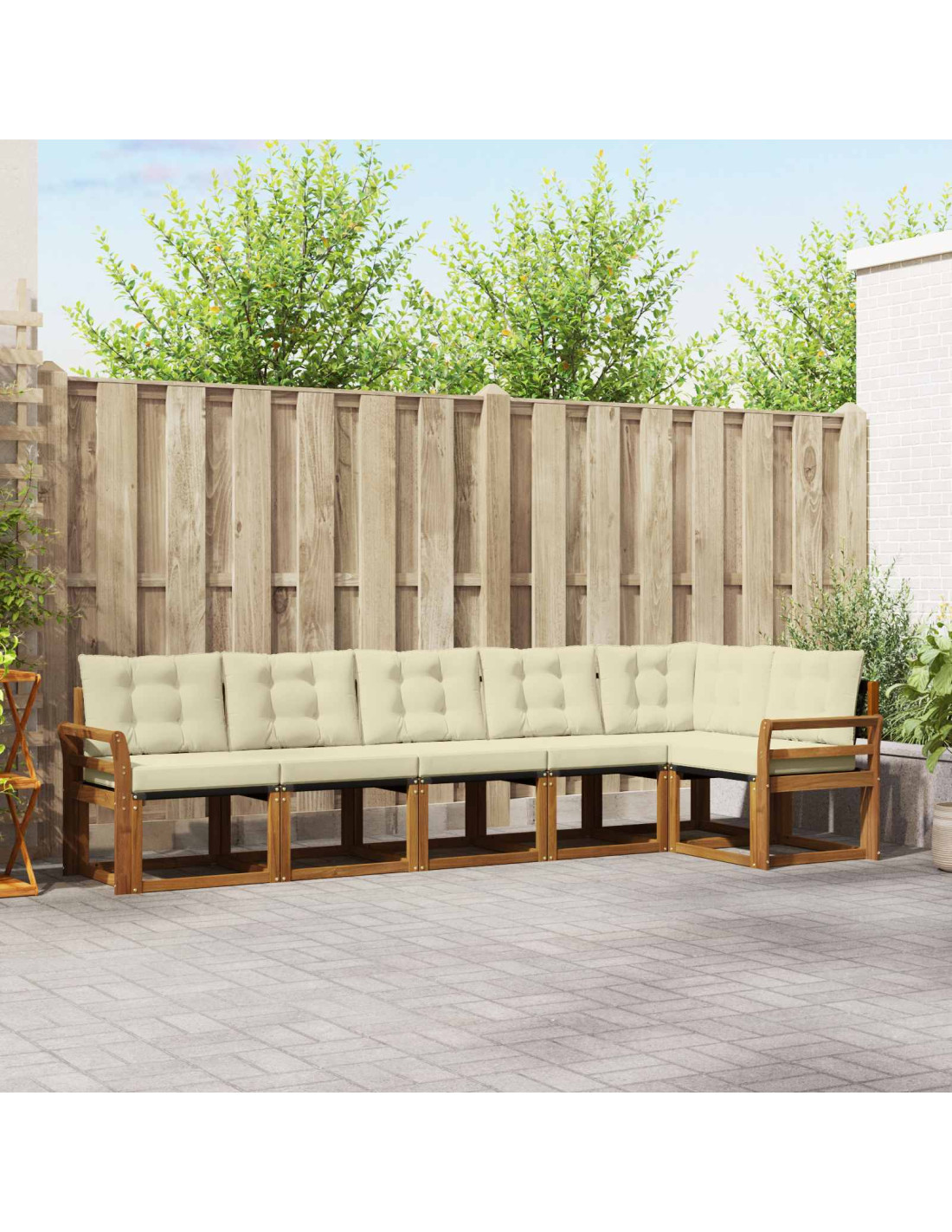 Questo set di mobili da esterno unisce design e funzionalità, creando un vero fulcro per giardini e terrazze. Con linee pulite e un look minimale, aggiunge eleganza e invita a relax e socialità. Realizzato in legno massello di acacia, assicura durabilità e un look sempre attuale, una scelta ideale per chi cerca bellezza e praticità nei mobili da esterno.