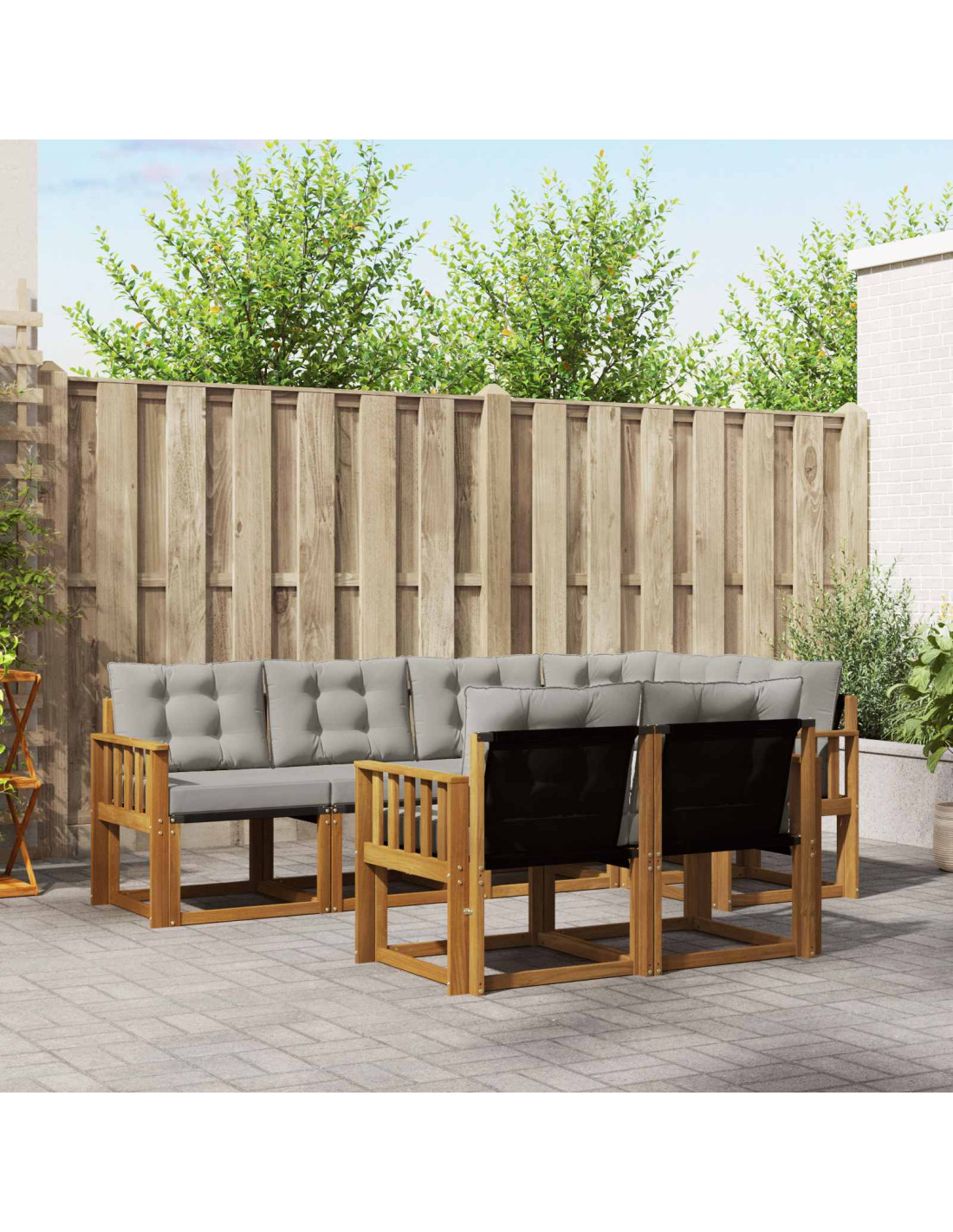 Il set di mobili da esterno unisce stile e funzionalità, creando un punto focale fantastico per qualsiasi giardino o terrazza. Con un design moderno, linee pulite e dettagli essenziali, aggiunge eleganza mentre invoglia al relax e a stare insieme. Fatto interamente in legno massello di acacia, è durevole e ha un piacevole colpo d'occhio, ideale per chi cerca sia utilità che modernità nei mobili esterni.