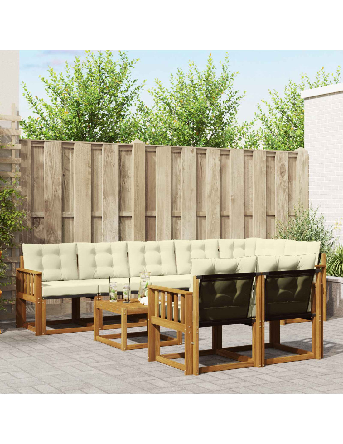 Il set di mobili da esterno unisce stile e funzionalità, creando un pezzo centrale straordinario per il tuo giardino o terrazza. Il design moderno, con linee pulite e pochi dettagli, porta eleganza e favorisce il relax all'aperto e le riunioni sociali. Realizzato completamente in legno massello di acacia, il set garantisce robustezza e un look che dura nel tempo, rendendolo perfetto per chi cerca praticità con un design raffinato nei mobili da esterno.
