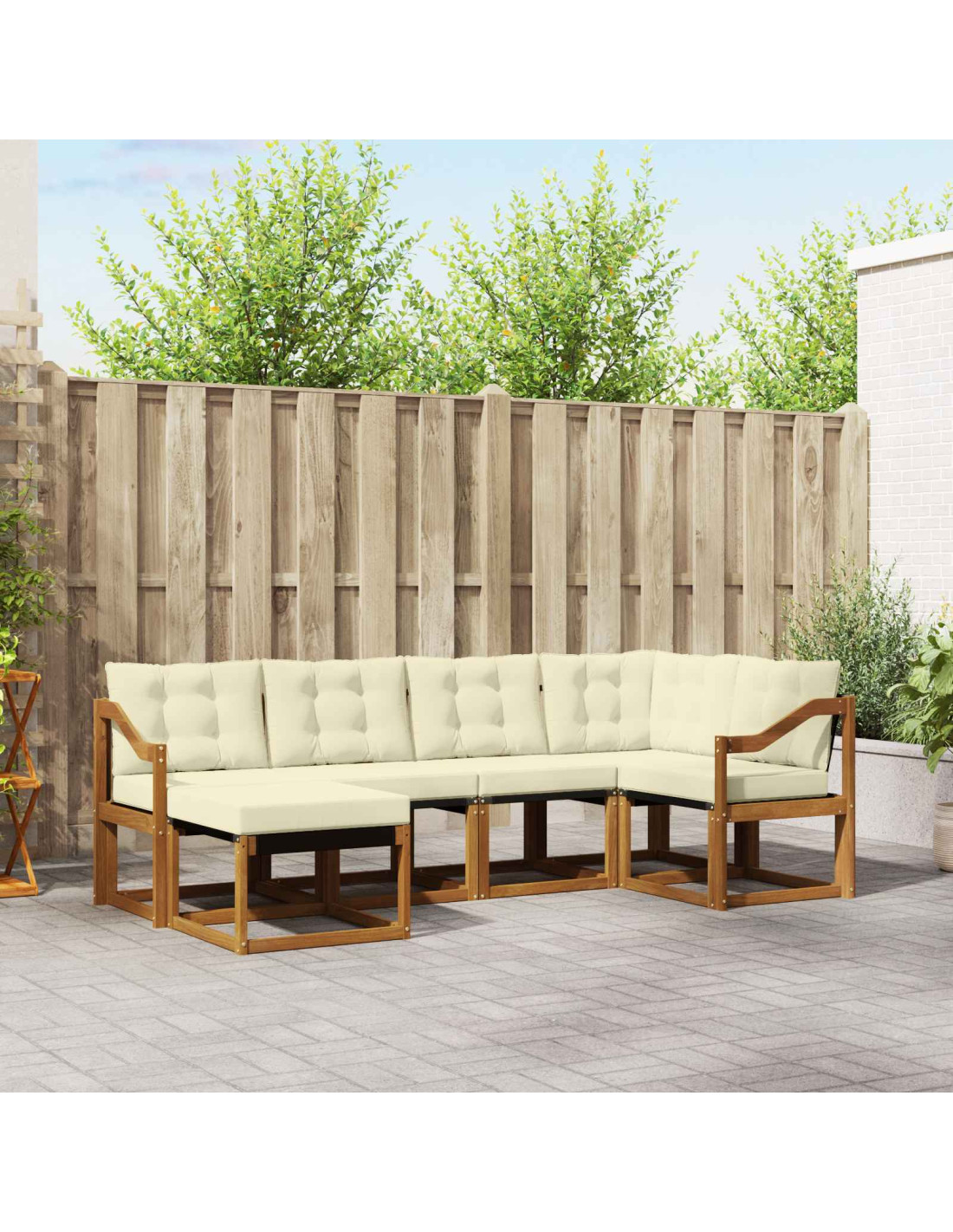 - Struttura in legno massello di acacia: La base di questo set divano è realizzata in legno massello di acacia, noto per la sua resistenza e la bella venatura. Questo legno promette lunghe prestazioni e si integra bene con l'ambiente esterno, offrendo eleganza e robustezza, perfetto per ogni condizione climatica.
