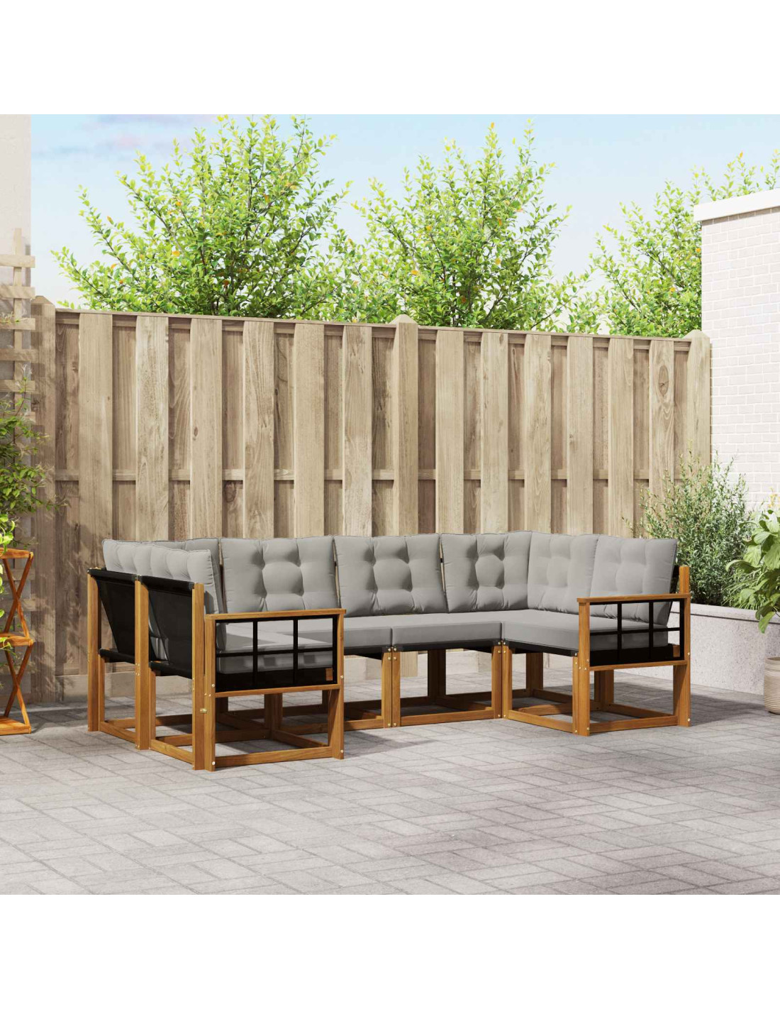 Questo Set di Divani Moderni è perfetto per il giardino, il patio o l'area piscina. Con i suoi colori marroni caldi e la texture del legno, porta eleganza e comfort ovunque. Progettato per momenti di relax e riunioni, è robusto e si integra bene con la natura.