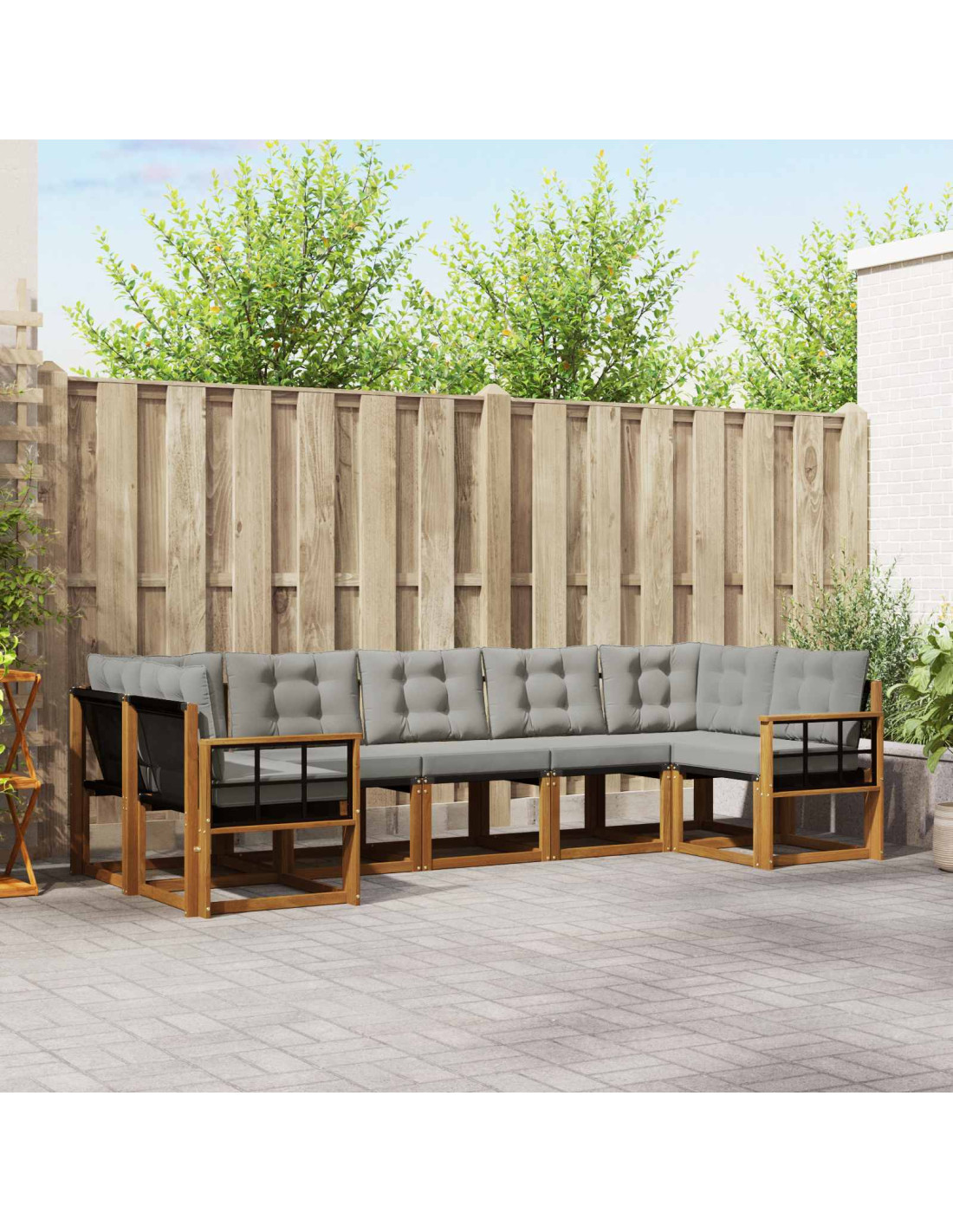 - Texture di legno naturale: Questo set è fatto in legno massello di acacia, che dona un fascino naturale e sofisticato. Questo materiale assicura durabilità e rende il tuo spazio esterno elegante. Il legno di acacia è robusto e garantisce a lungo la resistenza dei mobili da esterno.
