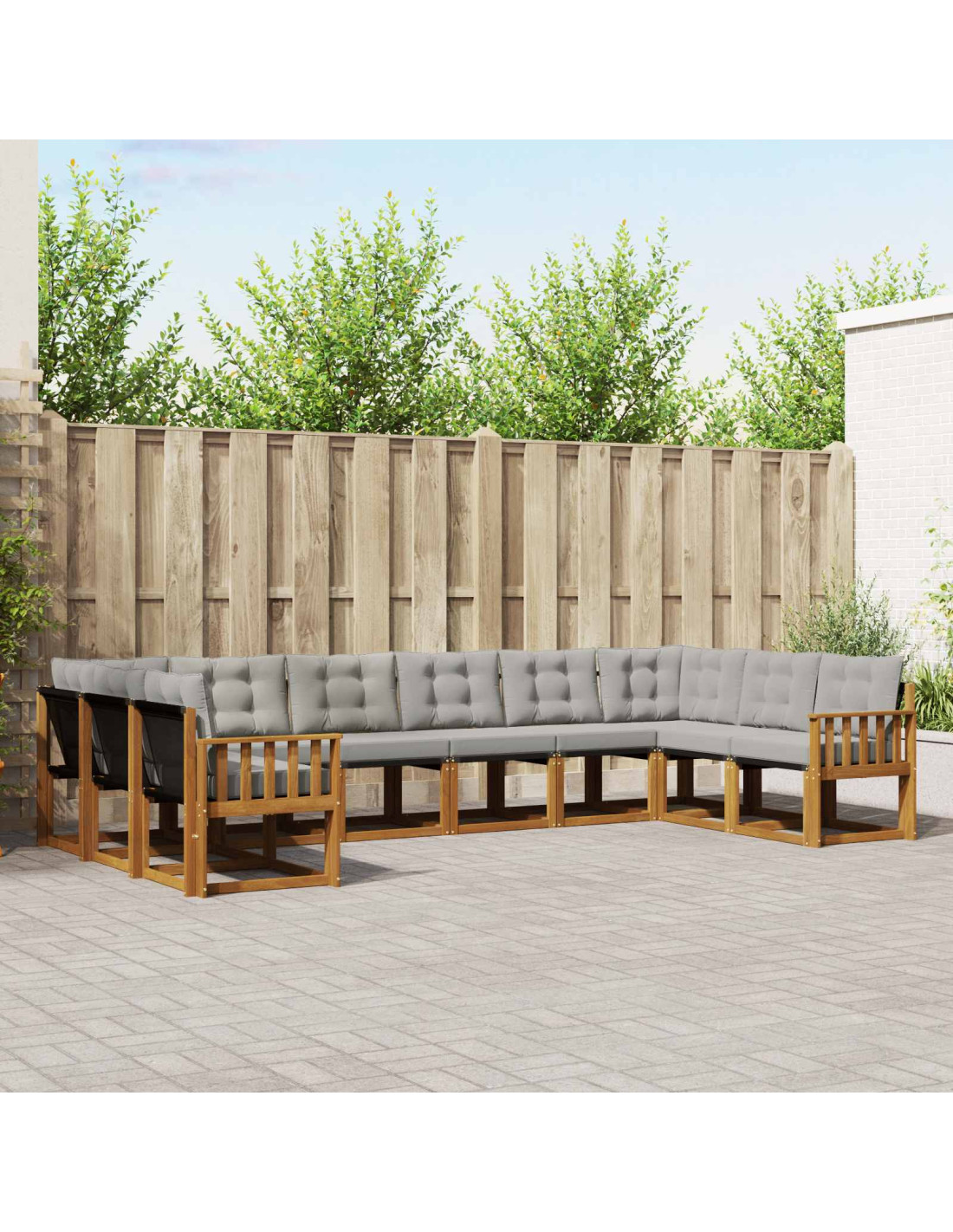 Il set di mobili da esterno fonde stile e funzionalità, diventando il centro di attenzione per ogni giardino o terrazza. Il design moderno, fatto di linee pulite e dettagli semplici, porta eleganza e supporta momenti di relax e socializzazione all'aperto. Interamente in legno massello di acacia, è resistente e piacevole da vedere, perfetto per chi cerca praticità e un'estetica raffinata nei mobili da esterno.