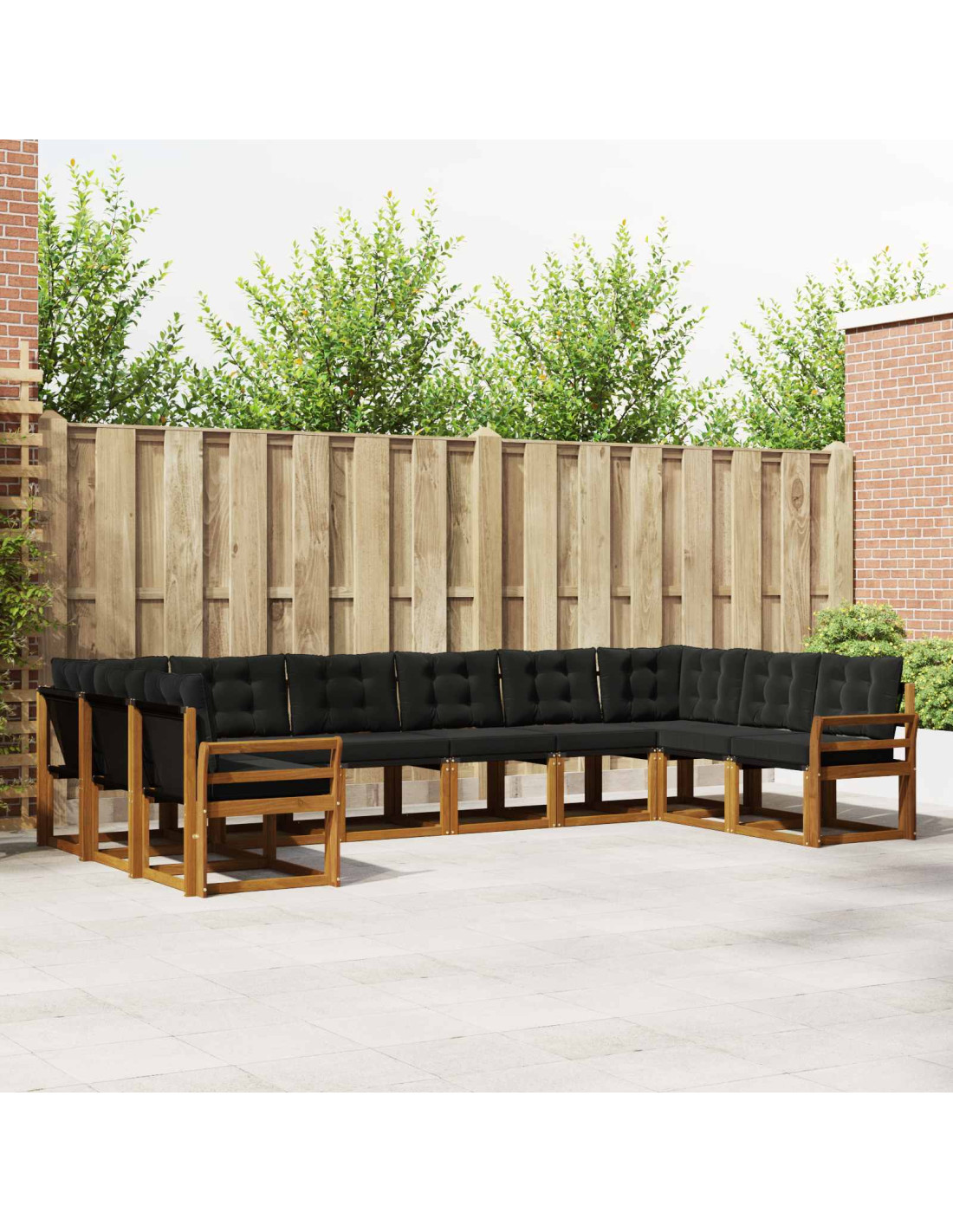 Il set di mobili da esterno fonde stile e funzionalità, diventando il centro di attenzione per ogni giardino o terrazza. Il design moderno, fatto di linee pulite e dettagli semplici, porta eleganza e supporta momenti di relax e socializzazione all'aperto. Interamente in legno massello di acacia, è resistente e piacevole da vedere, perfetto per chi cerca praticità e un'estetica raffinata nei mobili da esterno.