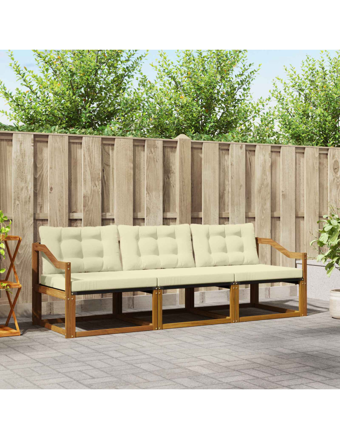 Il set di mobili da esterno offre un mix di stile e praticità, diventando il pezzo forte di qualsiasi giardino o terrazzo. Con un design moderno, caratterizzato da linee semplici e pochi dettagli, aggiunge un tocco di eleganza per il relax e le socializzazioni all'aperto. Realizzato in legno massello di acacia, è resistente e ha un aspetto che dura, rendendolo perfetto per chi cerca praticità e design raffinato negli spazi esterni.