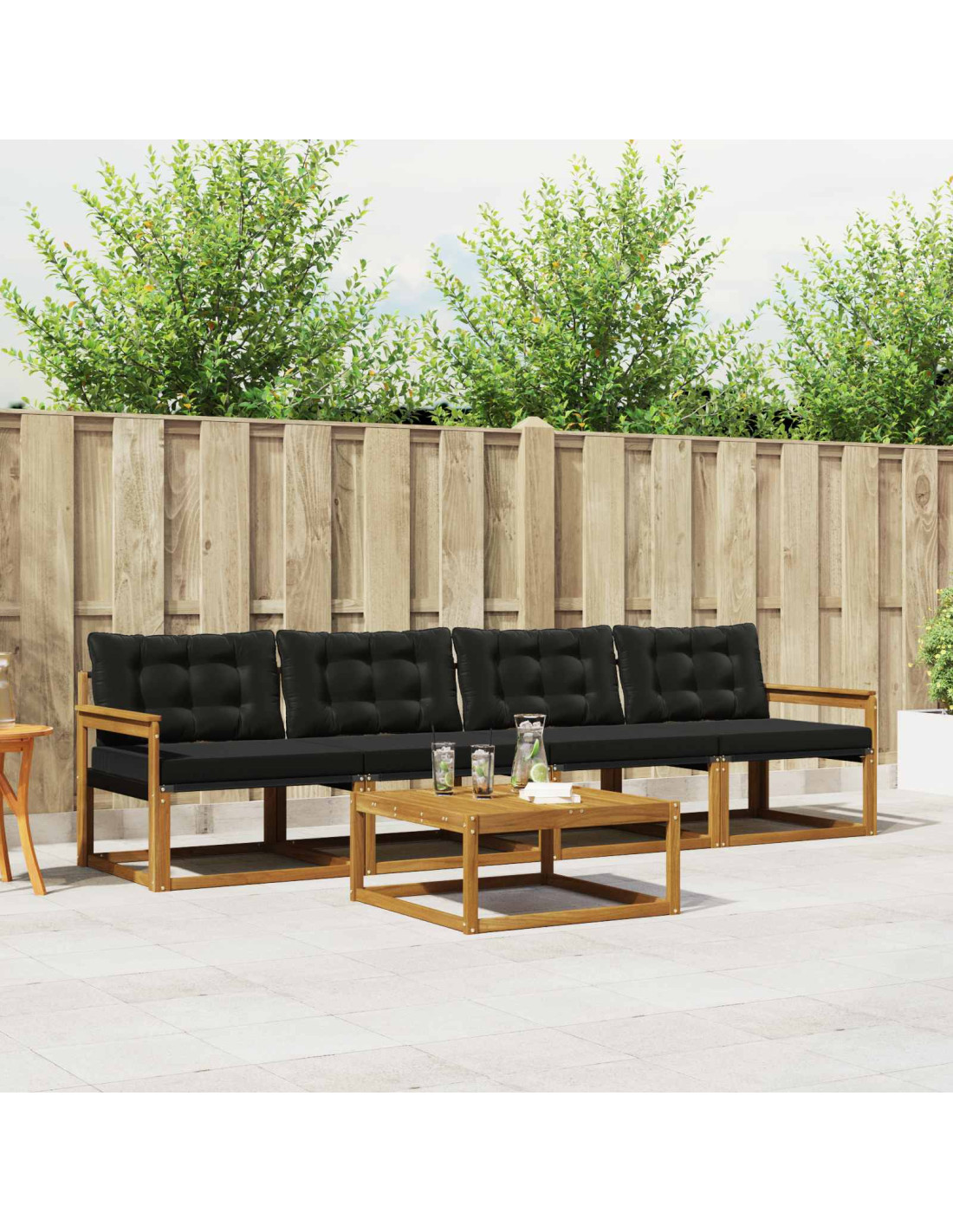 Il set di mobili da esterno combina stile e funzionalità, diventando il fulcro di ogni giardino o terrazza. Con un design moderno e linee pulite, aggiunge tocco di eleganza e invita al relax nelle occorrenze sociali. Realizzato completamente in legno massello di acacia, il set è durevole e offre un aspetto che dura nel tempo, il che lo rende la scelta perfetta per chi cerca praticità e design raffinato nei mobili da esterno.