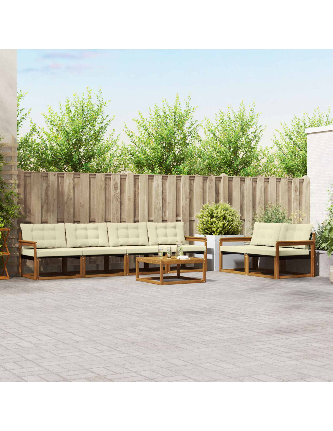 Il set di mobili da esterno unisce stile e funzionalità, diventando il pezzo principale per qualsiasi giardino o terrazza. Il design moderno, con linee pulite e minimalismo, offre eleganza mentre favorisce il relax e i momenti sociali all'aperto. Costruito in legno massello di acacia, assicura durata e un aspetto che dura nel tempo, rendendolo ideale per chi cerca sia praticità che bellezza nei mobili da esterno.