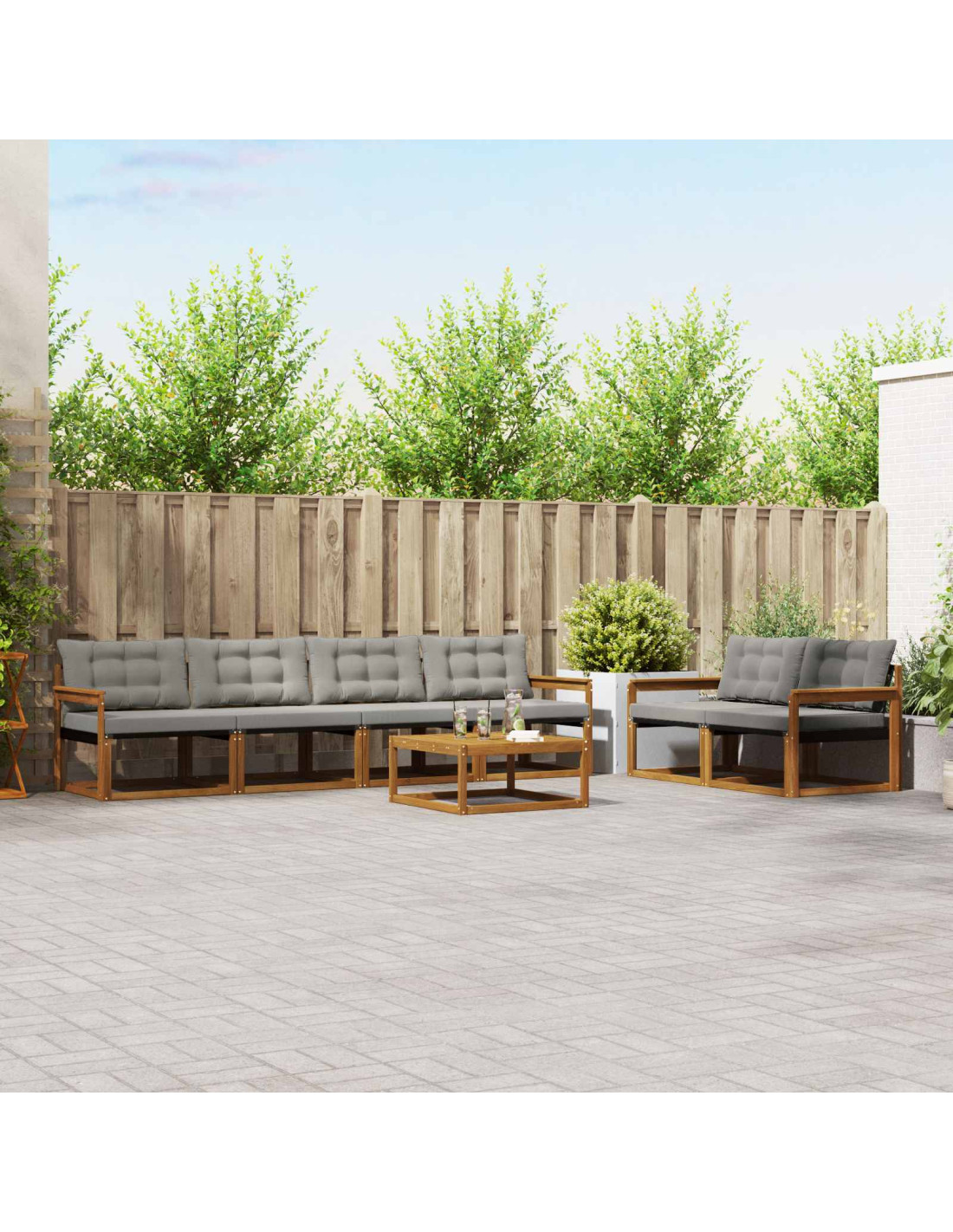 Il set di mobili da esterno unisce stile e funzionalità, diventando il pezzo principale per qualsiasi giardino o terrazza. Il design moderno, con linee pulite e minimalismo, offre eleganza mentre favorisce il relax e i momenti sociali all'aperto. Costruito in legno massello di acacia, assicura durata e un aspetto che dura nel tempo, rendendolo ideale per chi cerca sia praticità che bellezza nei mobili da esterno.