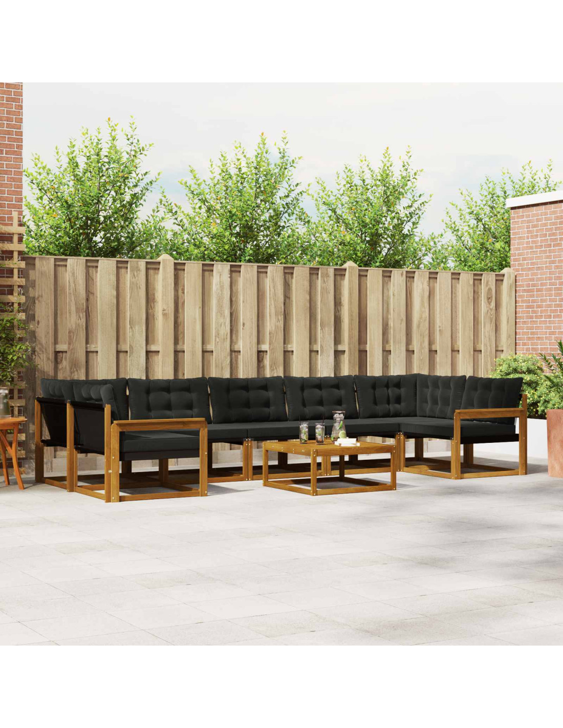 Questo set di divani è fatto per l'esterno ed è sia bello che pratico, ideale per giardini o terrazze. Con un tocco moderno e linee pulite, offre una soluzione flessibile per ogni incontro all'aperto. La ricca tonalità marrone e la texture del legno elegante aggiungono stile a qualsiasi spazio, invitando alla chiacchierata e al relax. Che tu stia organizzando una cena estiva o rilassandoti sotto le stelle, questo set si adatta perfettamente a ogni momento, consentendoti di configurare le sezioni modulari come preferisci.