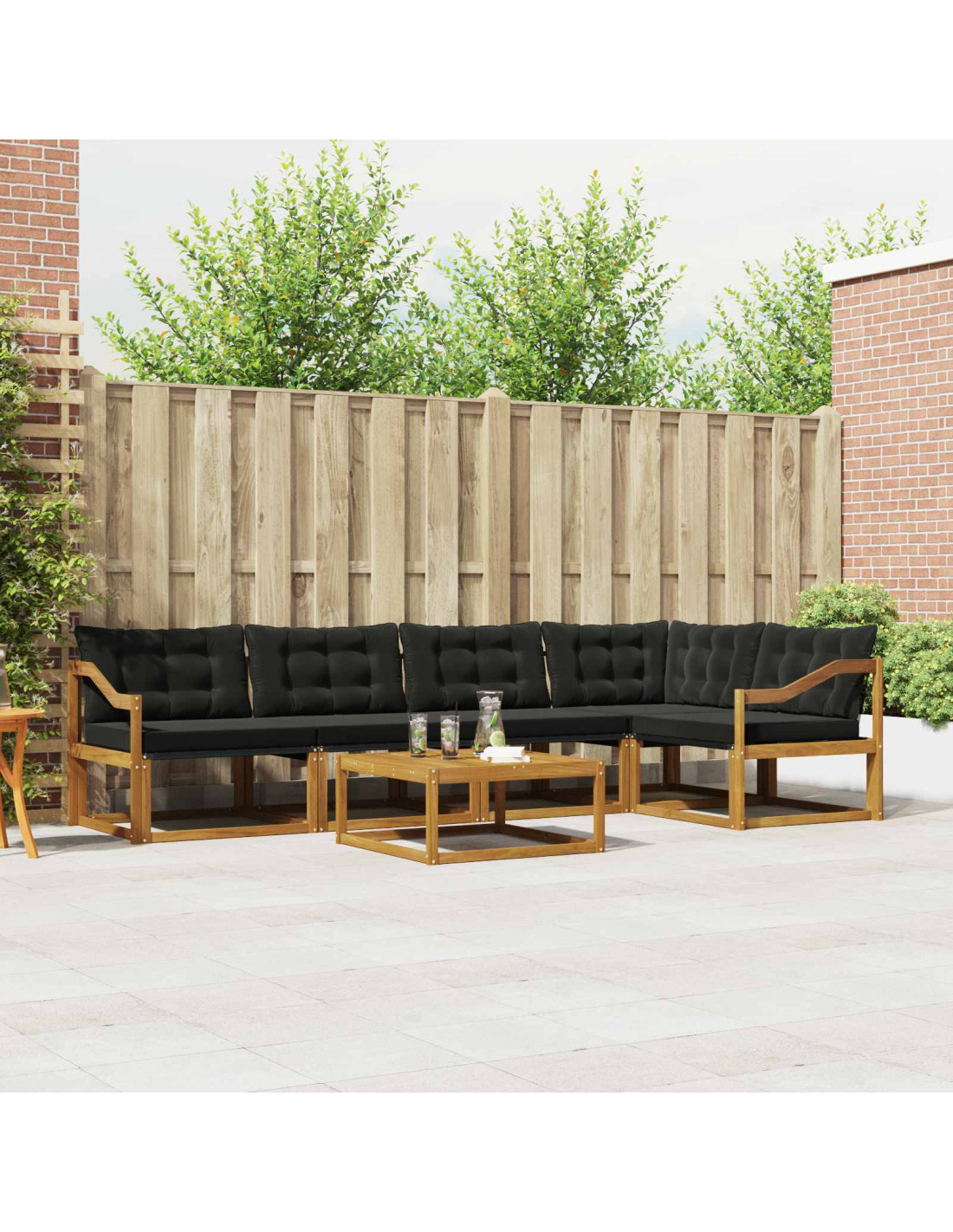 Questo set da esterno combina stile e funzionalità, ed è un vero colpo d'occhio per qualsiasi giardino o terrazzo. Il design moderno, con linee pulite e dettagli minimi, aggiunge eleganza e favorisce il relax all'aperto e i ritrovi sociali. Realizzato in legno massello di acacia, garantisce durata e un look che dura nel tempo, perfetto per chi cerca praticità e design raffinato nei mobili per esterni.