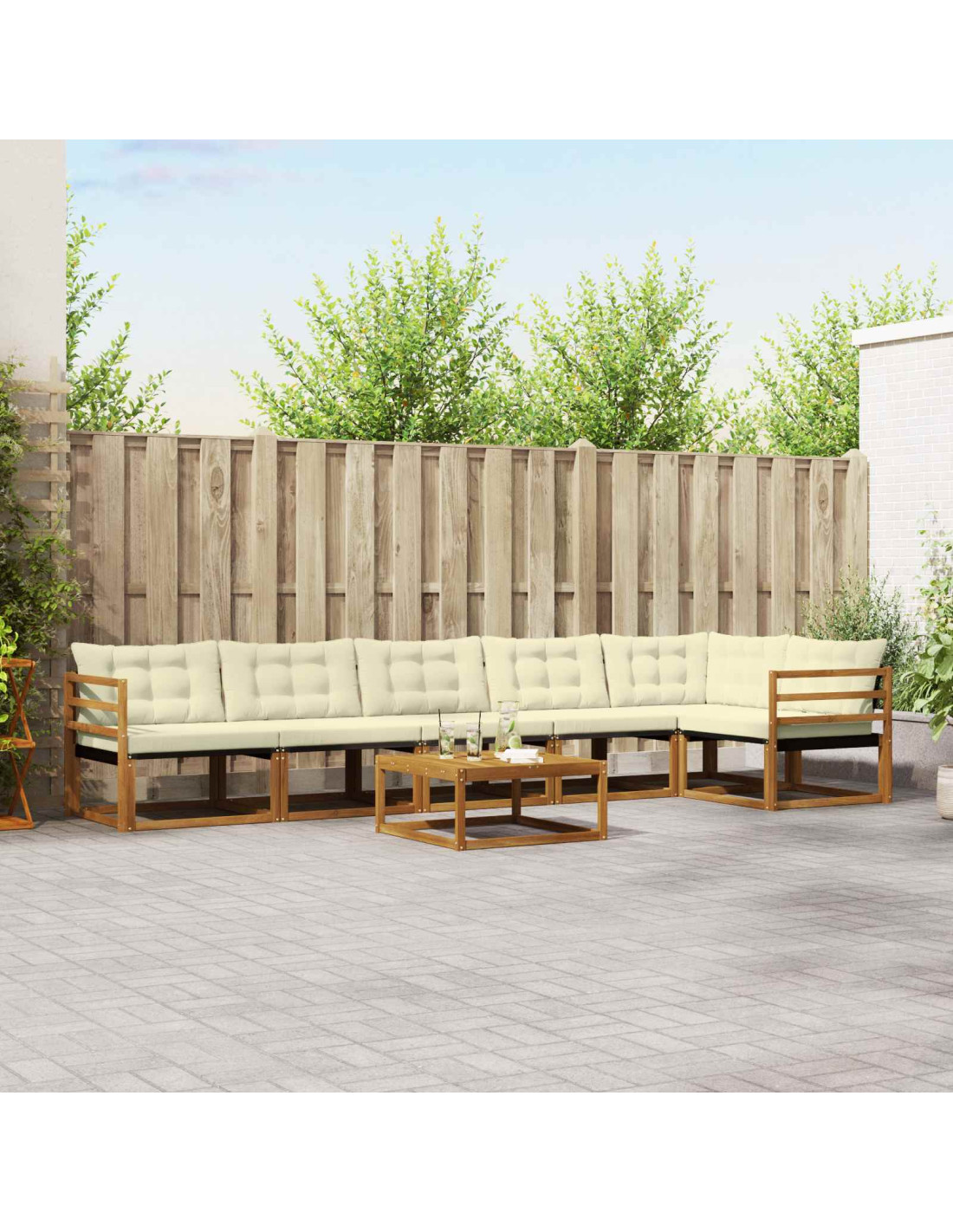 Questo set di mobili da esterno è il mix perfetto di stile e praticità, rendendolo il centro dell'attenzione in ogni giardino o terrazza. Con un design moderno, linee pulite e dettagli minimalisti, porta eleganza e crea un'atmosfera ideale per rilassarsi e per socializzare. Realizzato in legno massello di acacia, il set è resistente e mantiene un aspetto bello nel tempo, ideale per chi cerca qualcosa di pratico ma raffinato.