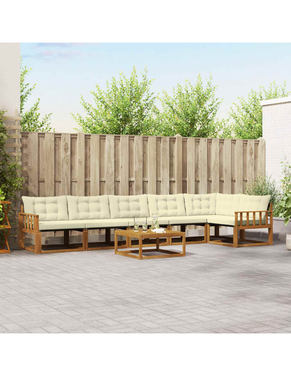 Questo set di mobili da esterno è il mix perfetto di stile e praticità, rendendolo il centro dell'attenzione in ogni giardino o terrazza. Con un design moderno, linee pulite e dettagli minimalisti, porta eleganza e crea un'atmosfera ideale per rilassarsi e per socializzare. Realizzato in legno massello di acacia, il set è resistente e mantiene un aspetto bello nel tempo, ideale per chi cerca qualcosa di pratico ma raffinato.