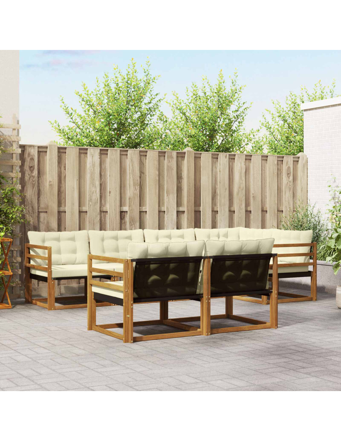 Questo set di mobili per esterni unisce stile e funzionalità, diventando il punto focale del tuo giardino o terrazza. Il design moderno, con linee pulite e dettagli minimali, aggiunge un tocco di eleganza e supporta il tuo relax all'aperto e le riunioni con gli amici. Realizzato interamente in legno massello di acacia, ti offre resistenza e bellezza, rendendolo perfetto per chi cerca praticità senza rinunciare al design.