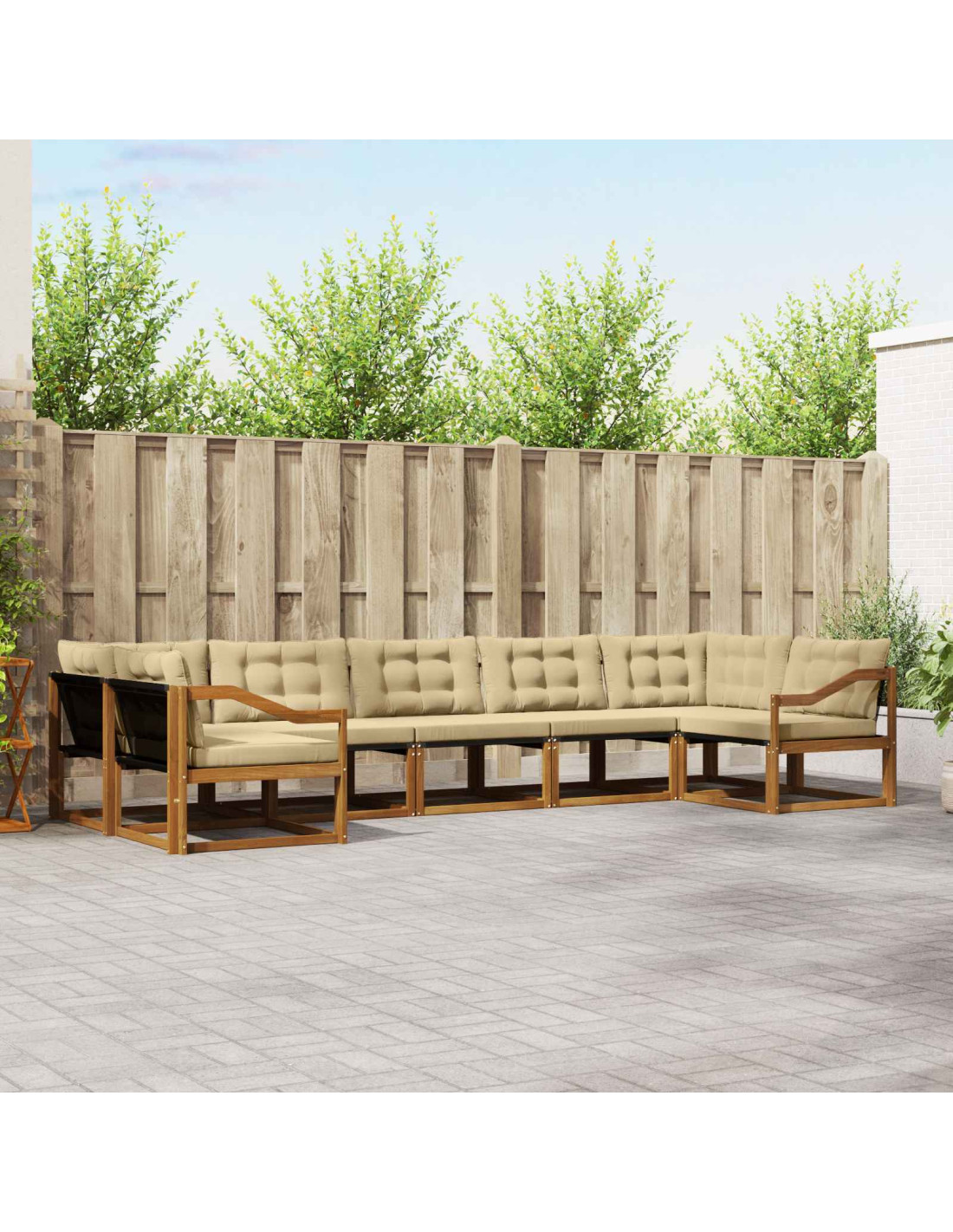 Il set di mobili da esterno unisce stile e funzionalità, diventando il pezzo forte di qualunque giardino o terrazza. Con il suo design moderno, linee semplici e pochi dettagli, aggiunge un tocco di eleganza, perfetto per rilassarsi all'aperto o per socializzare con gli amici. Costruito in legno massello di acacia, questo set è robusto e ha una bellezza che dura nel tempo. È la scelta ideale per chi cerca praticità senza rinunciare al design nei mobili per esterni.