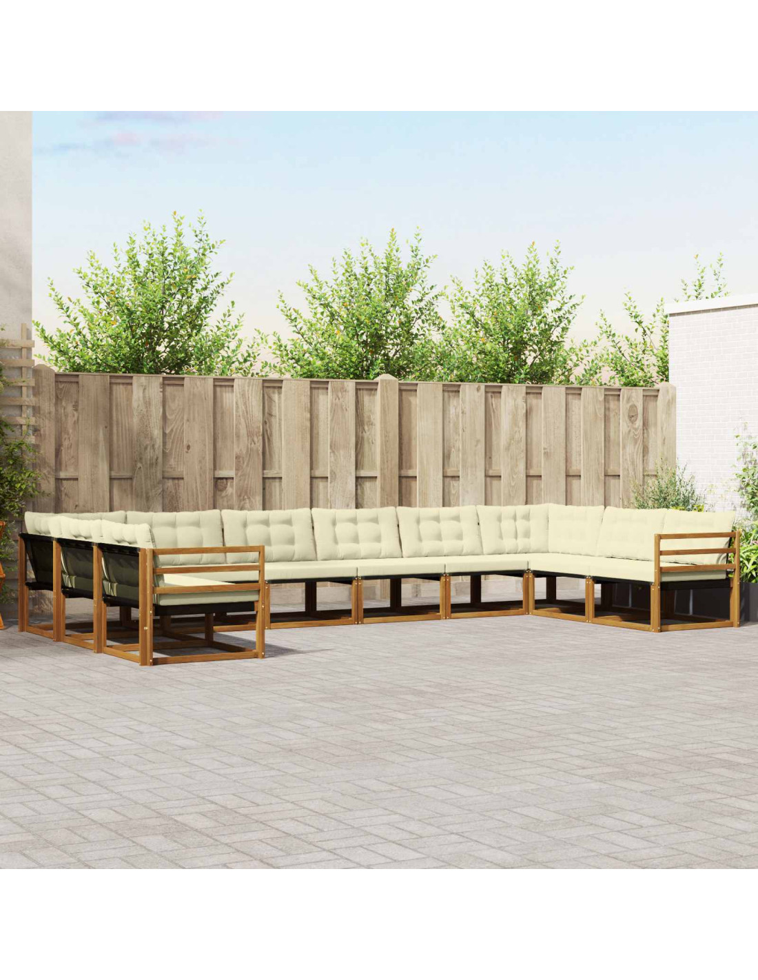- Componenti inclusi: Dotato di schienali e braccioli in Textilene e legno massello di acacia, questo set di divani offre supporto ergonomico e comfort. La disposizione modulare permette una personalizzazione creativa, e i cuscini per esterno sono rimovibili, offrendo una seduta gradevole arricchita da un riempimento in schiuma per un relax unico.
