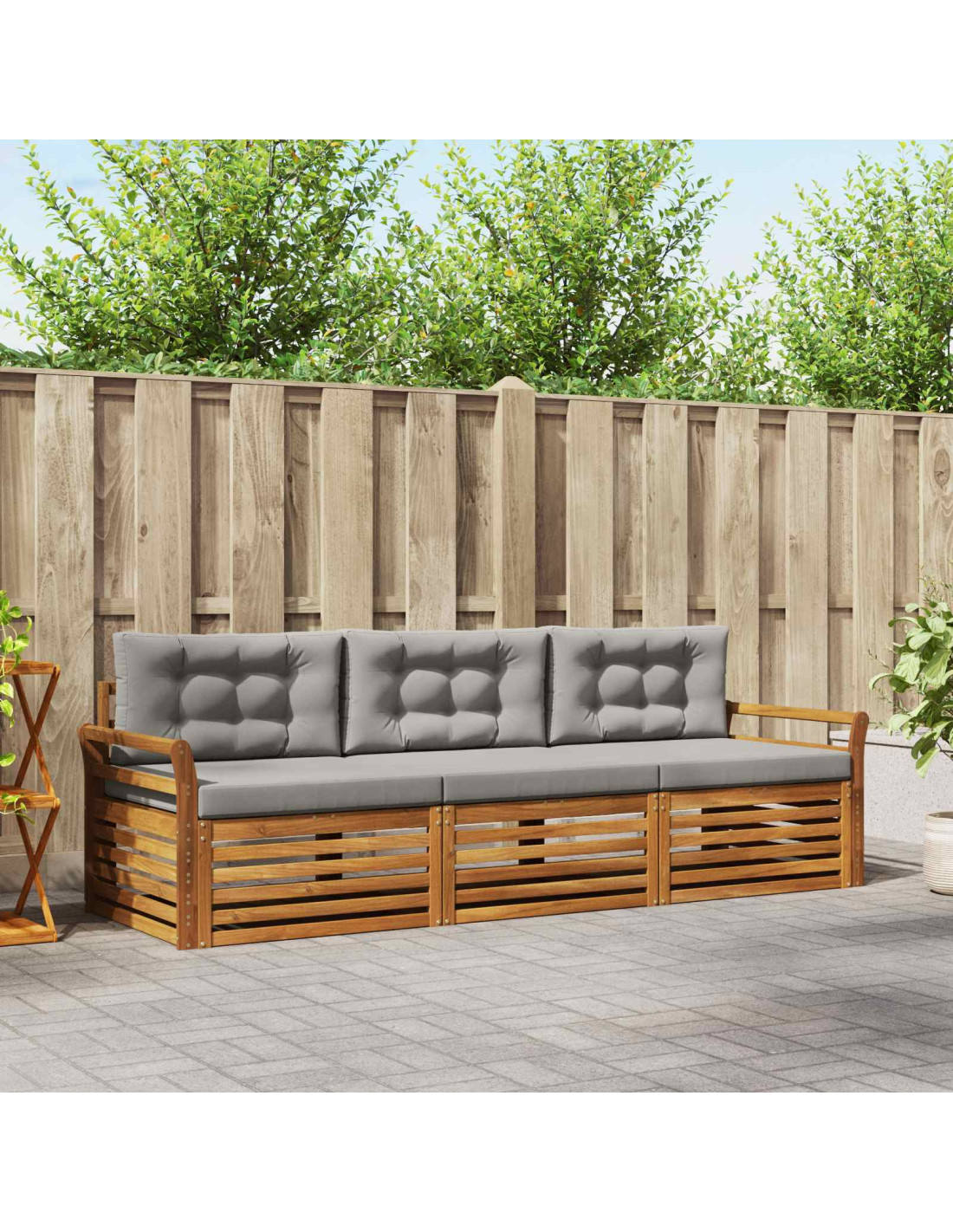 Questo set di mobili da esterno mixa stile e funzionalità, creando un punto focale sorprendente per ogni giardino o terrazza. Il design moderno, con linee pulite e dettagli minimi, aggiunge eleganza,perfetto per rilassarsi all'aperto e per socializzare. Interamente realizzato in legno massello di acacia, garantisce durata e un look visivamente gradevole, ideale per chi cerca praticità e design nei mobili da esterno.