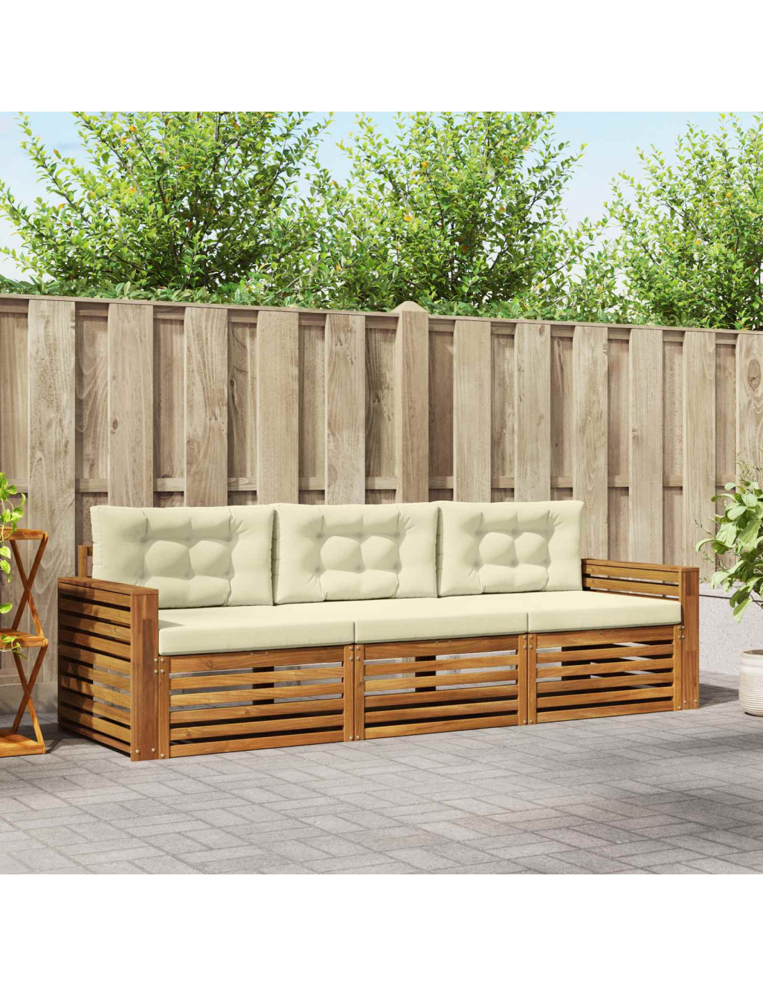 Questo set di mobili da esterno mixa stile e funzionalità, creando un punto focale sorprendente per ogni giardino o terrazza. Il design moderno, con linee pulite e dettagli minimi, aggiunge eleganza,perfetto per rilassarsi all'aperto e per socializzare. Interamente realizzato in legno massello di acacia, garantisce durata e un look visivamente gradevole, ideale per chi cerca praticità e design nei mobili da esterno.