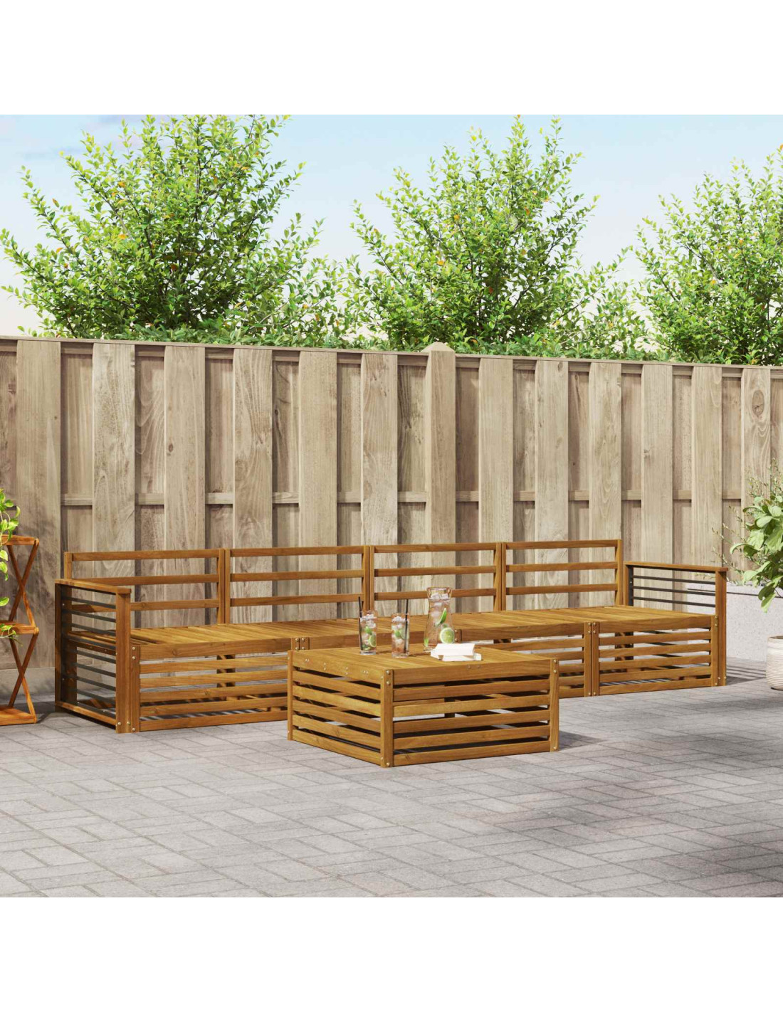 Il set di mobili da esterno unisce stile e funzionalità, creando un colpo d'occhio per qualsiasi giardino o terrazza. Il design moderno con linee pulite e dettagli semplici aggiunge eleganza e supporta il relax all'aperto e le riunioni sociali. Interamente in legno massello di acacia, questo set è resistente e mantiene il suo aspetto nel tempo, ideale per chi cerca praticità e un design raffinato.