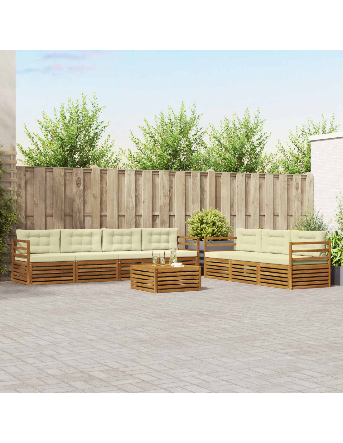 Il set di mobili da esterno è un mix perfetto di stile e praticità, creando un punto d'attrazione per ogni giardino o terrazza. Con il suo design moderno, fatto di linee pulite e dettagli minimal, aggiunge un tocco di eleganza, rendendolo ideale per rilassarsi all'aperto e per incontri sociali. Realizzato in legno massello di acacia, è robusto e visivamente gradevole, perfetto per chi cerca funzionalità e bellezza nei mobili da esterno.