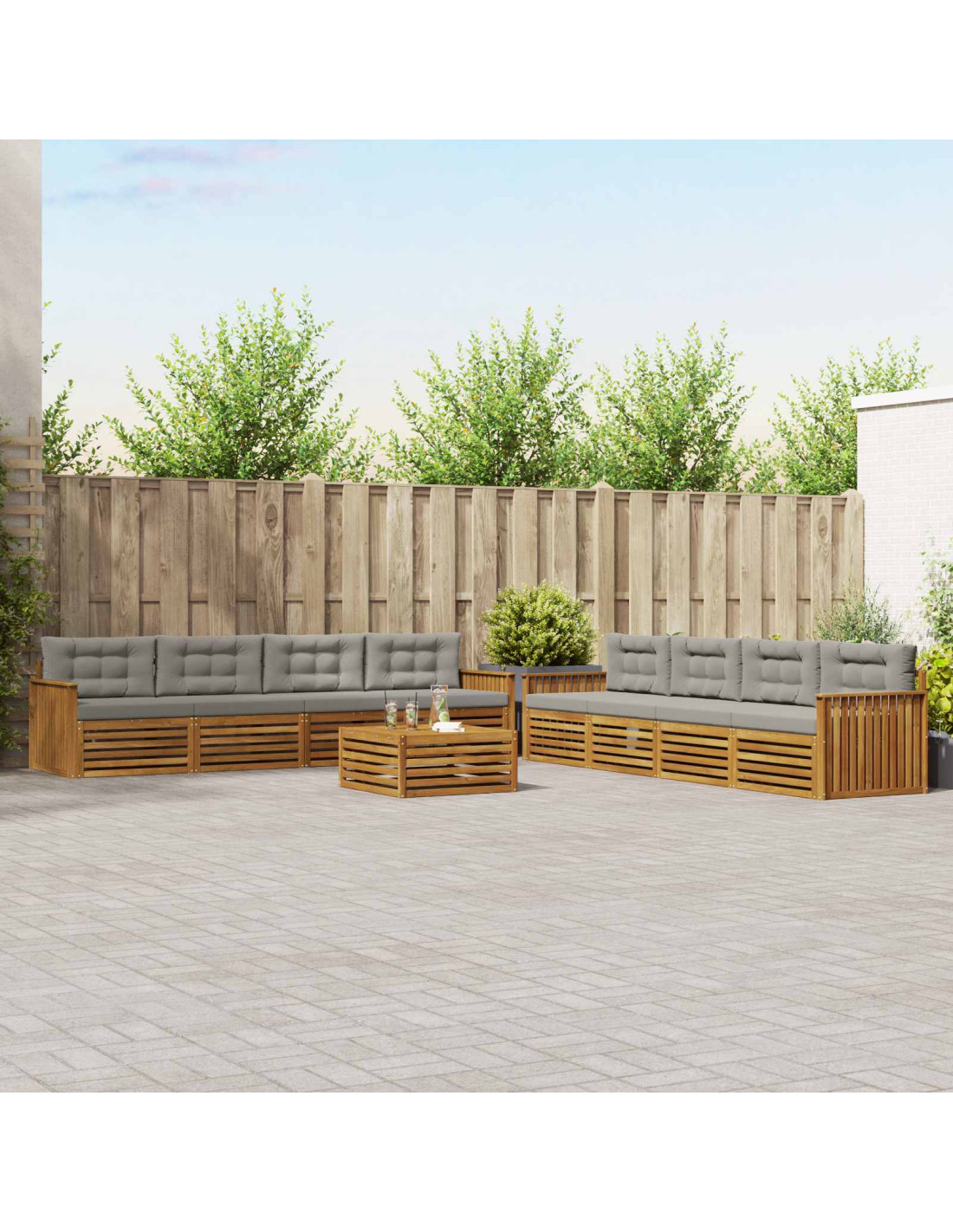 - Struttura a doghe fisse: La solida struttura a doghe fornisce stabilità e supporto, rendendo questo set pratica scelta per spazi all'aperto.