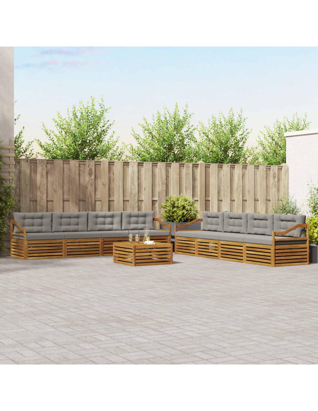 - Struttura a doghe fisse: La solida struttura a doghe fornisce stabilità e supporto, rendendo questo set pratica scelta per spazi all'aperto.