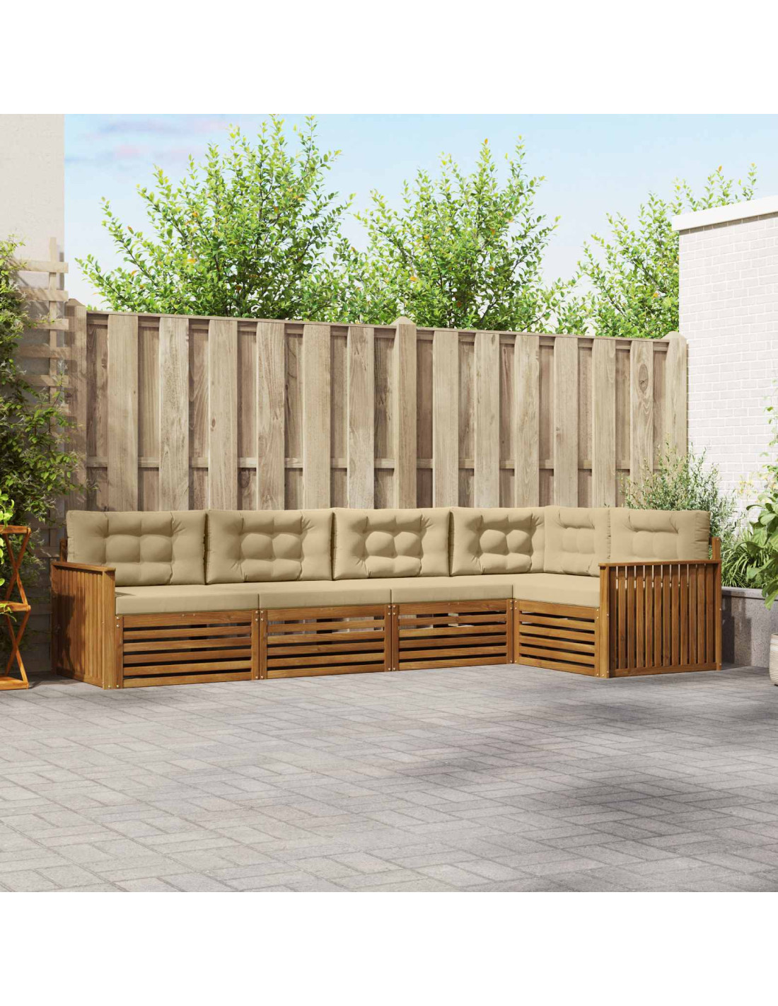 Questo set di mobili da esterno unisce stile e funzionalità, diventando un pezzo centrale per qualsiasi giardino o terrazza. Il design moderno, con linee pulite e semplici, aggiunge eleganza e favorisce il relax all'aperto e le riunioni con gli amici. Fatto interamente in legno massello di acacia, garantisce durabilità e un aspetto sempre bello, perfetto per chi vuole praticità e design nei mobili da esterno.