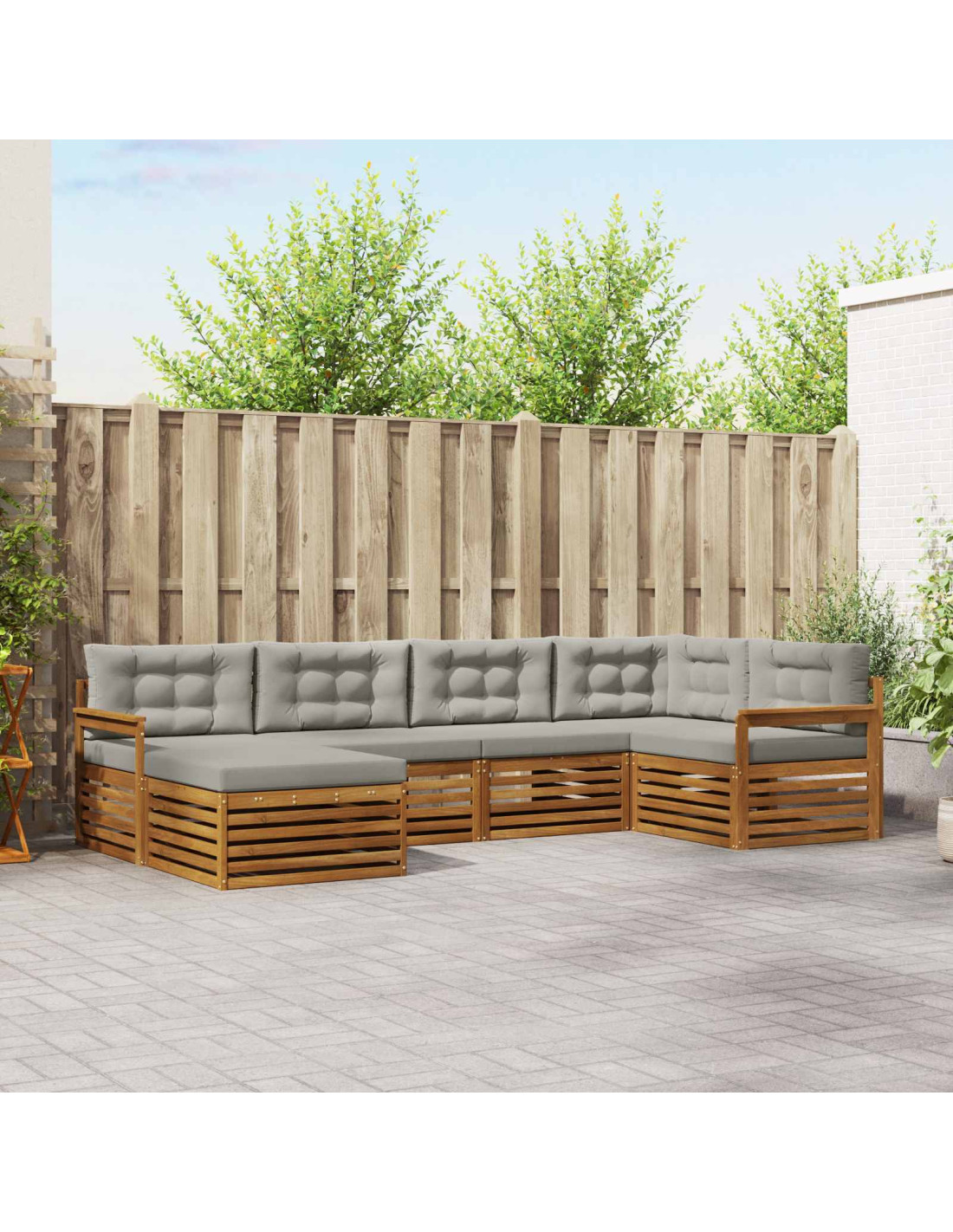 Il set di mobili da esterno unisce stile e funzionalità, diventando il punto focale per giardini e terrazze. Con un design moderno caratterizzato da linee pulite e pochi dettagli, aggiunge eleganza e invita al relax all'aperto. Realizzato in legno massello di acacia, garantisce durabilità e un aspetto che dura nel tempo, rendendolo una scelta ideale per chi cerca sia praticità che un tocco di classe nei mobili da esterno.